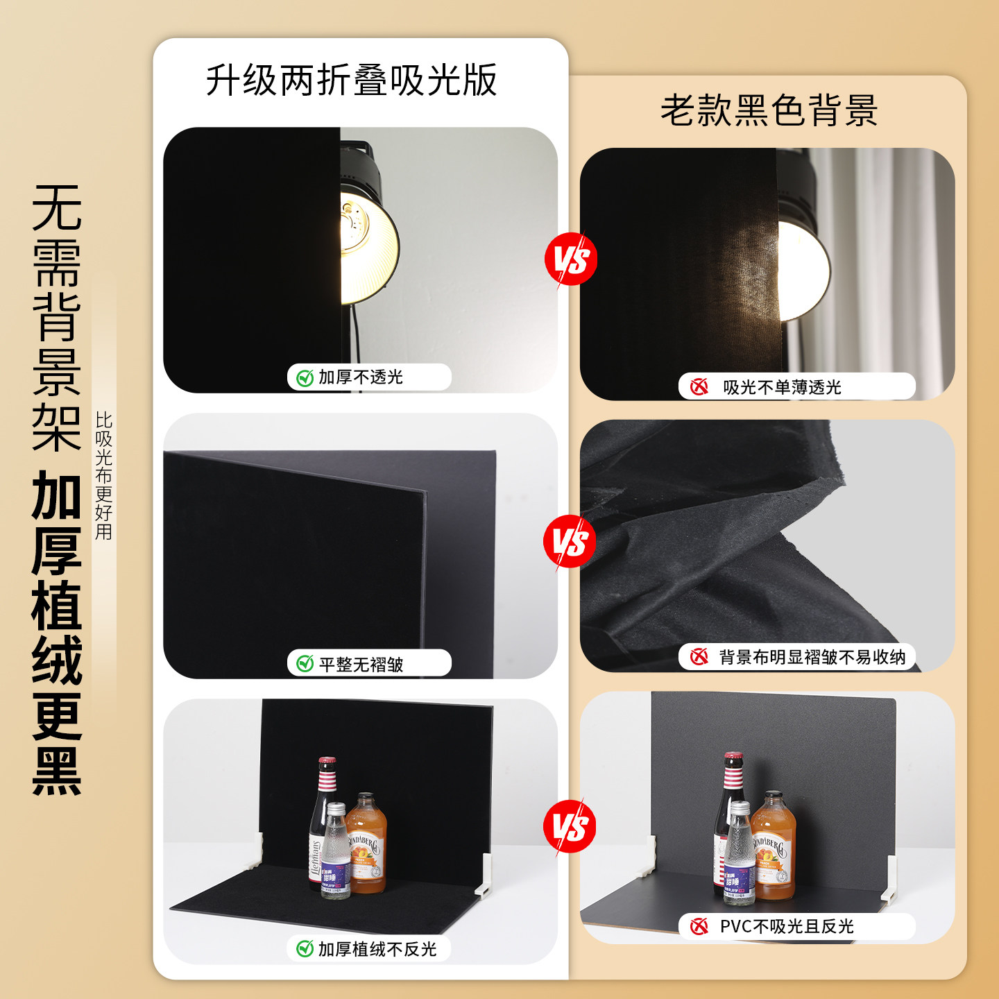 黑色吸光背景板A3折叠植绒板桌面摄影直播不透光背景布拍摄道具产品静物珠宝布置造景美食蛋糕手办高级拍照
