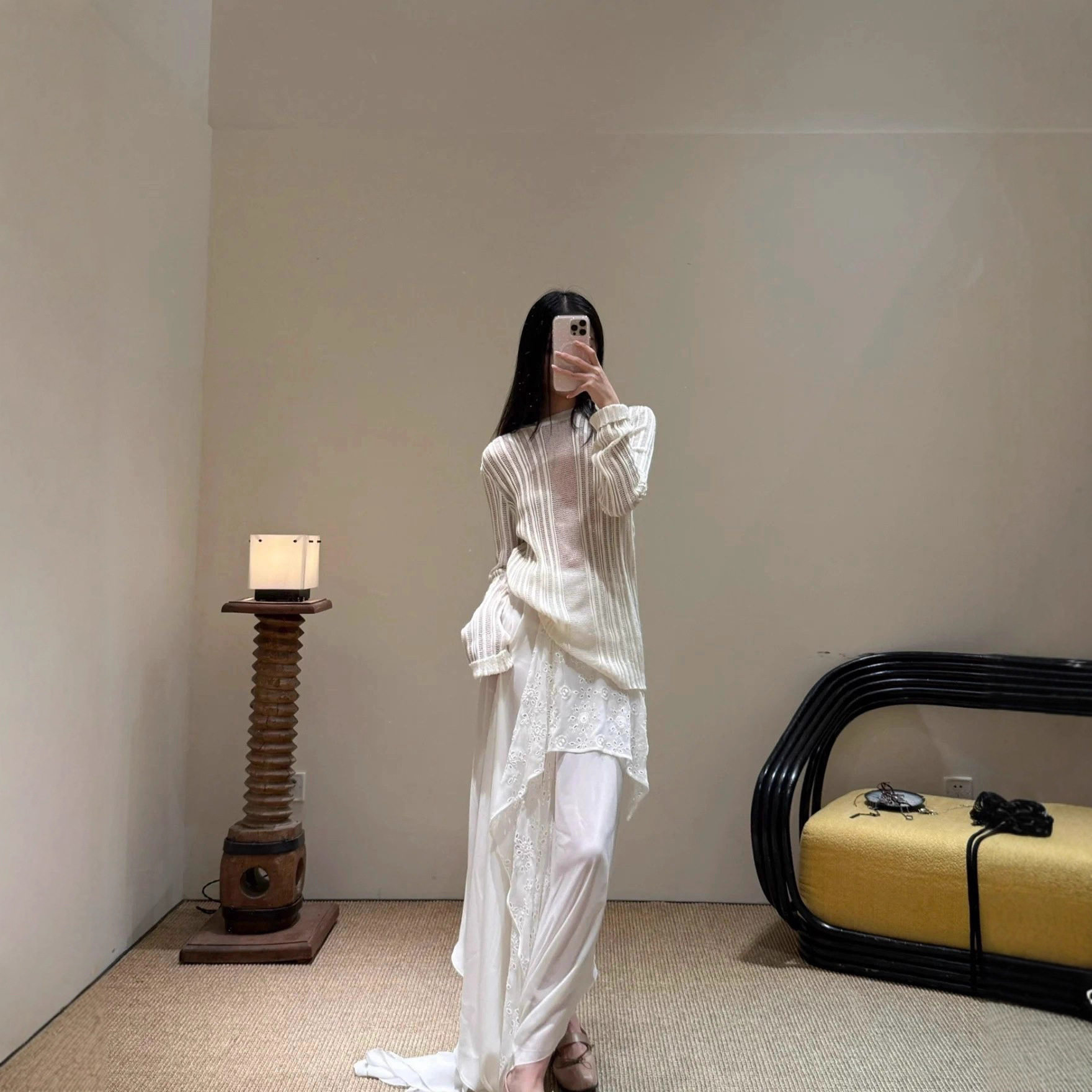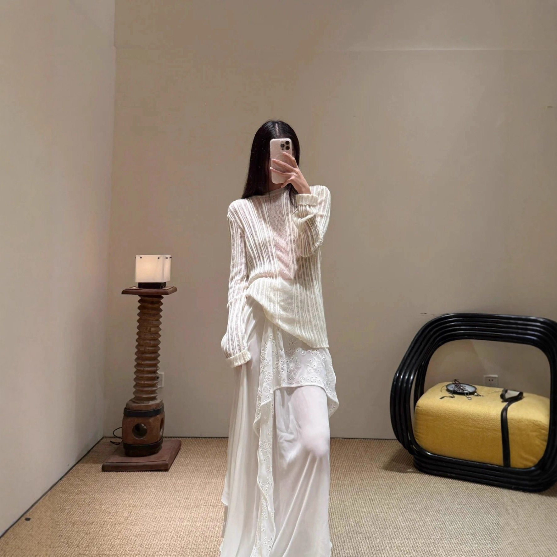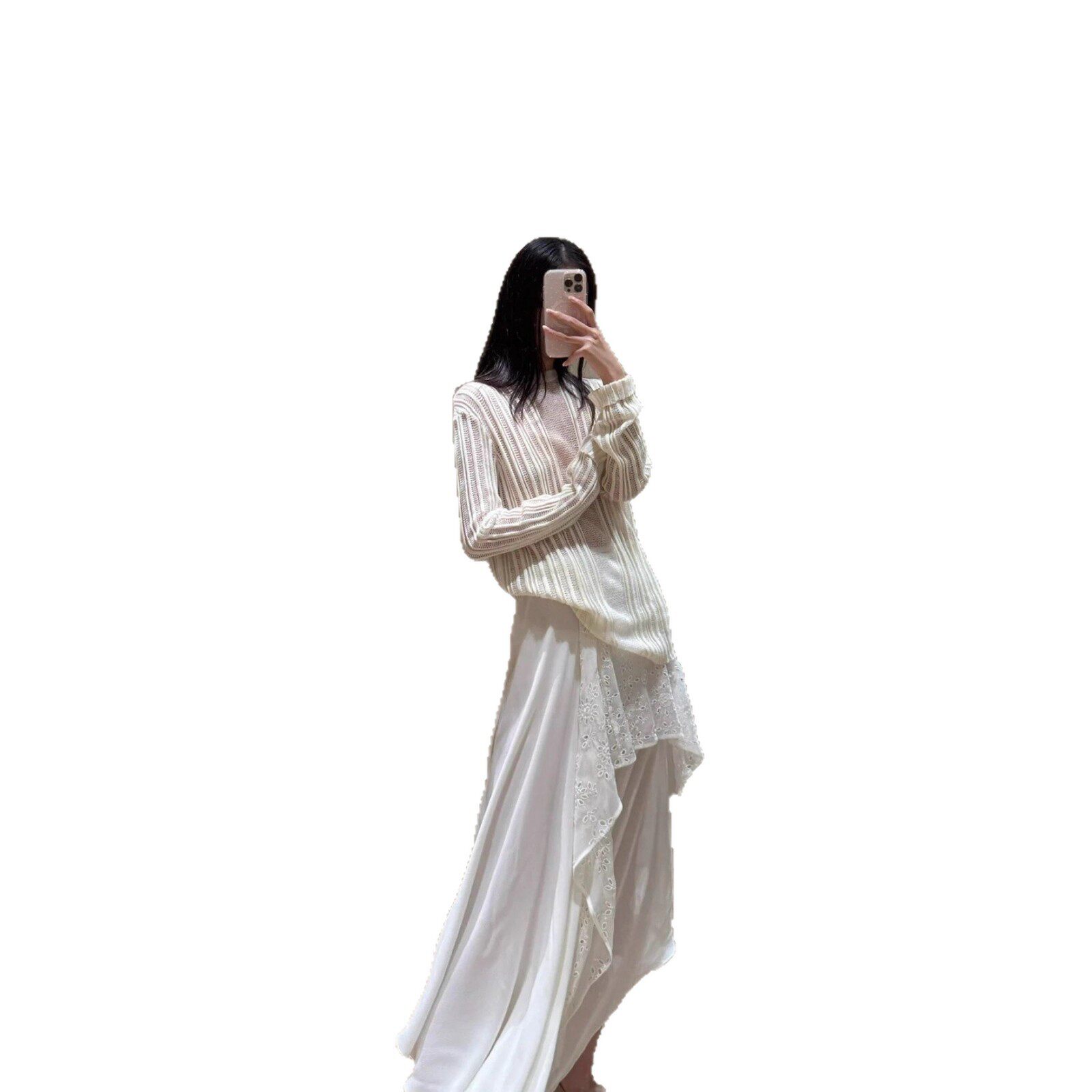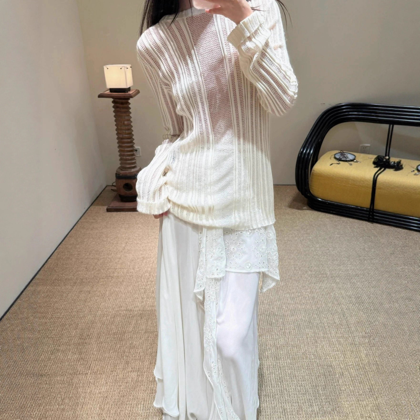 25ss百搭温柔风肌理感白色镂空针织圆领罩衫 本 女 上海高版 花一