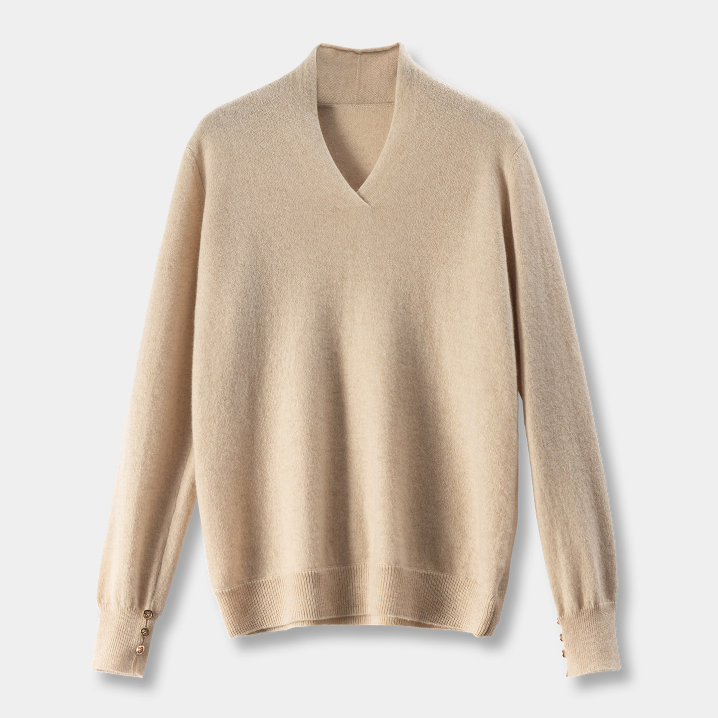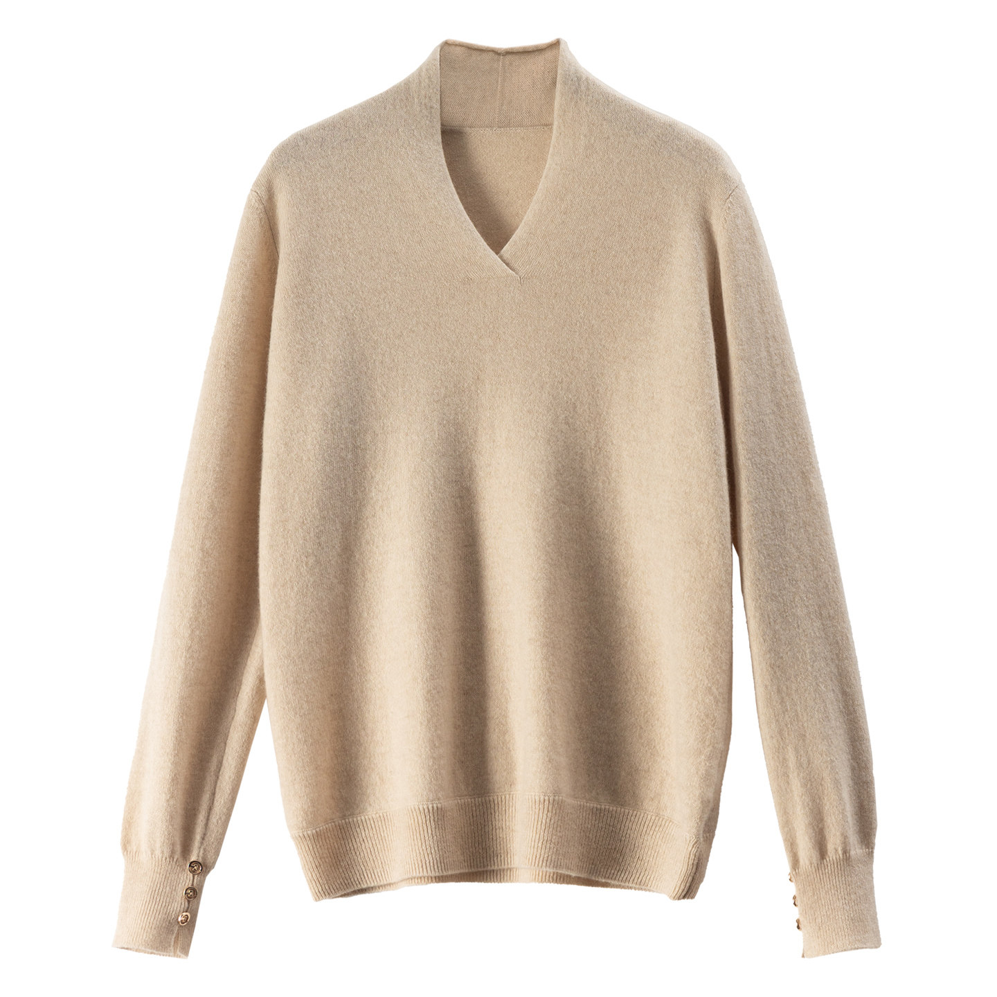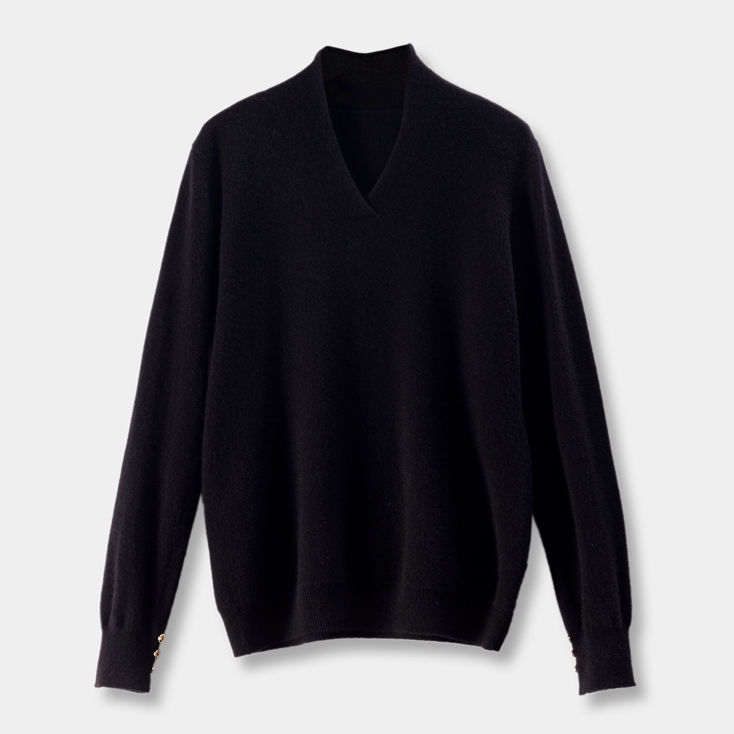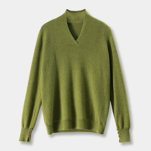 H春上7号 法柜100康赛妮山羊绒加高V领毛衣D女16J8 臻奢享受