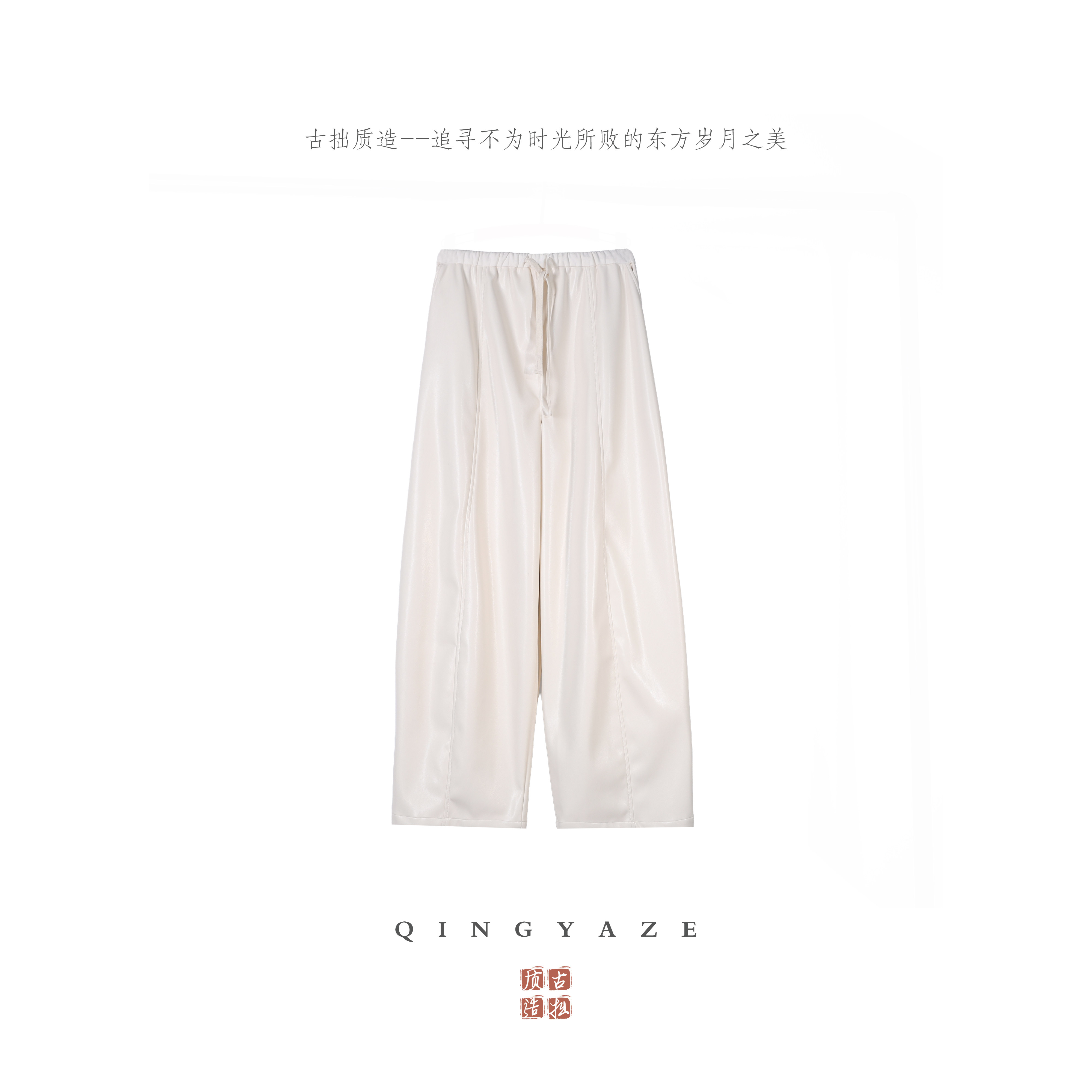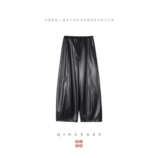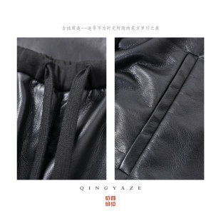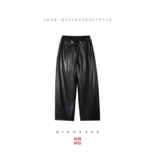 奶油皮裤 GZ7224 进口仿真皮加绒松弛感长裤