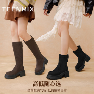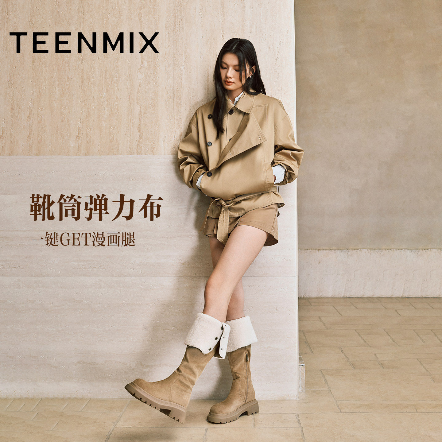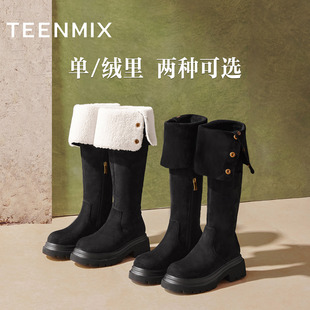天美意加绒弹力时装 衣橱直播间 靴过膝长靴女冬短靴 所有女生