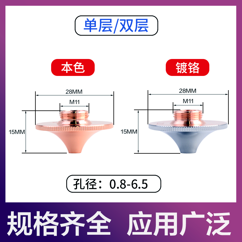 激光切割机喷嘴宏山款 万顺兴激光割嘴铜头d28喷头2.0单双1.5双喷