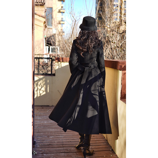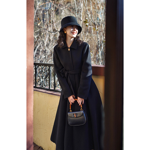 胖mm特大码 毛呢外套 黑色赫本风呢子大衣女秋冬高级感慵懒风中长款