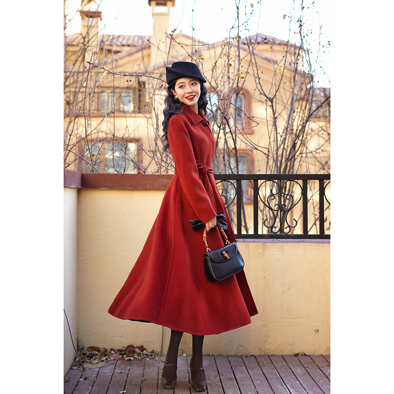 毛呢外套 jk原创日系学院风正肩牛角扣大衣加厚中长款 阿车家 大码