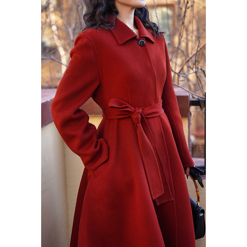 ArguE 高级外套 CulturE贵气红钻设计感廓形垫肩羊毛毛呢大衣长款