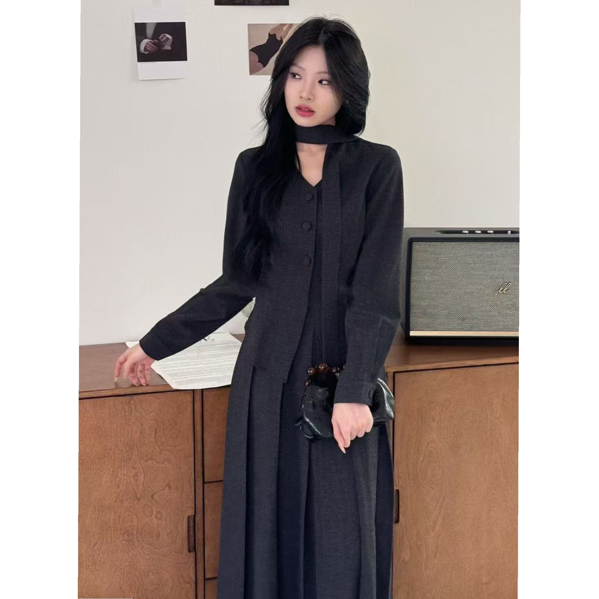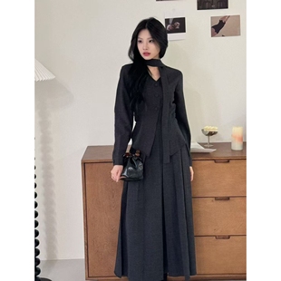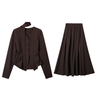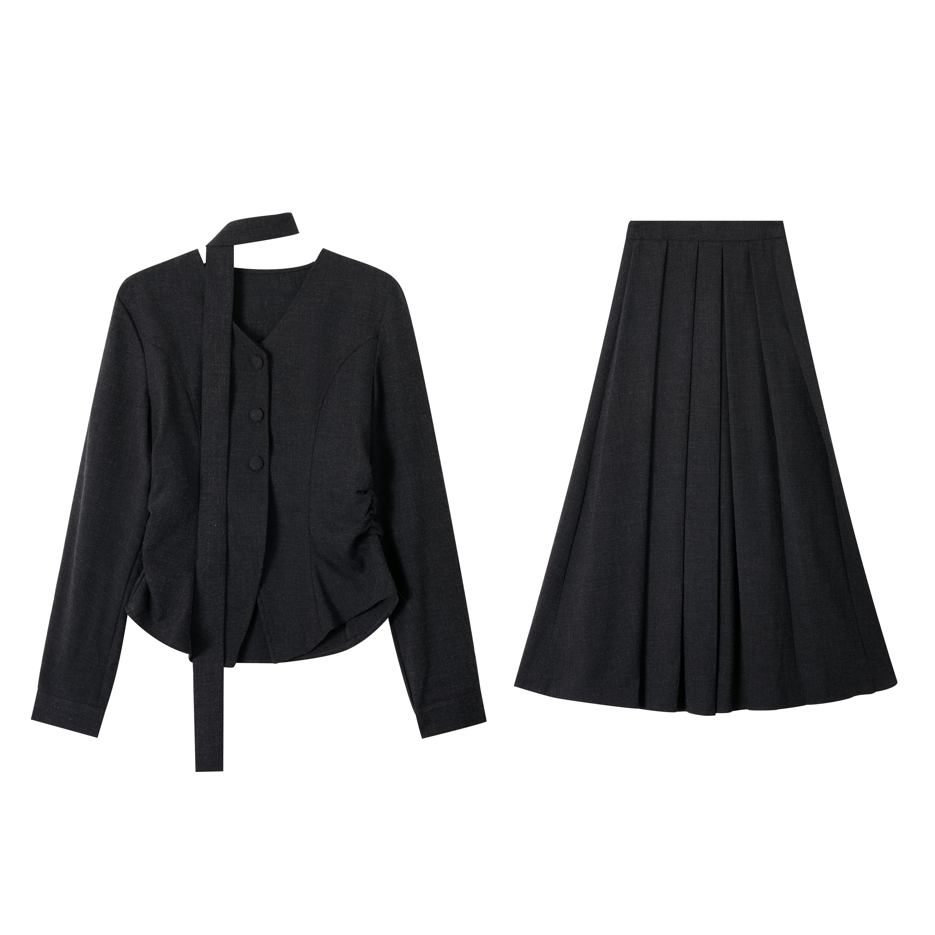 飘带西装 二茵ERYIN早秋新款 长裙显瘦气质两件套 蜜蜂欢乐社