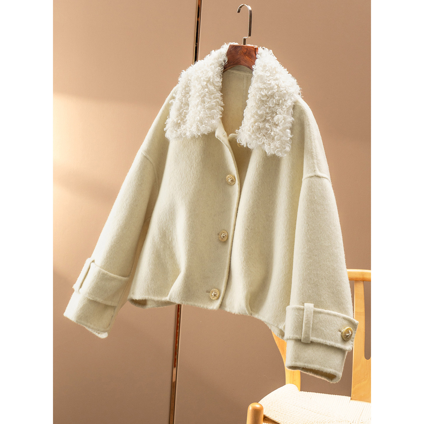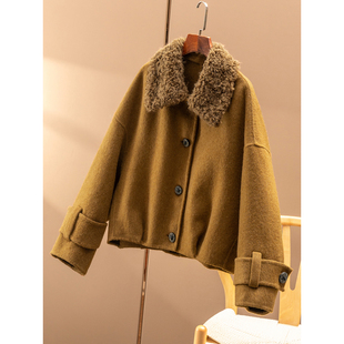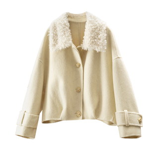 复古双面呢可拆卸毛领短款 TRUE 70%羊毛 NATURE 毛呢大衣外套