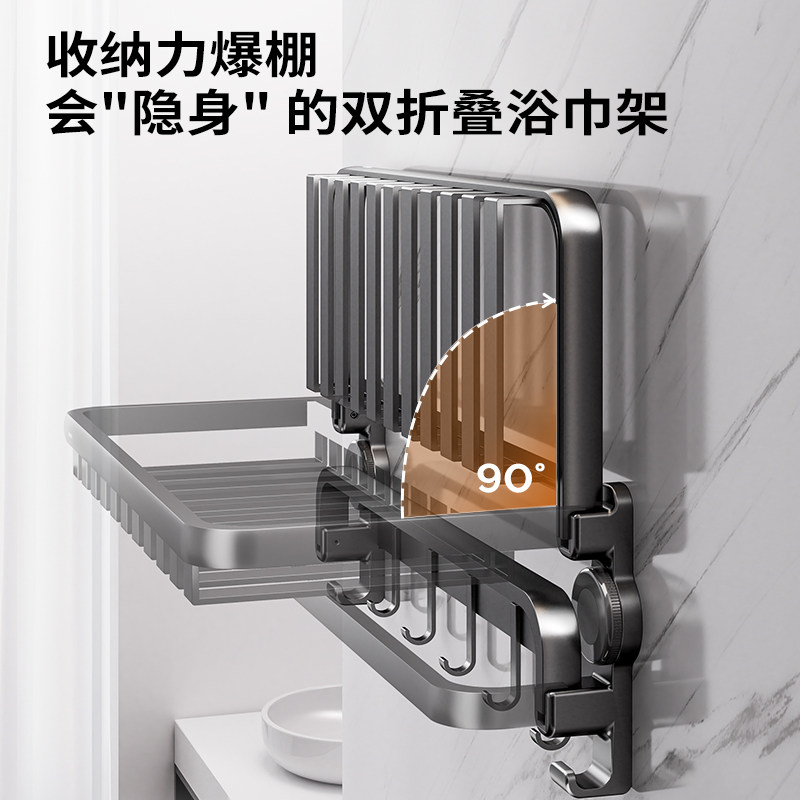 枪灰色毛巾架卫生间免打孔折叠浴室置物架壁挂式 厕所太空铝浴巾架