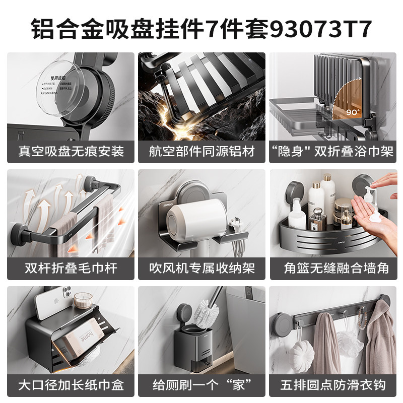 潜水艇枪灰毛巾架卫生间免打孔浴室置物架高端可折叠挂浴巾架套装