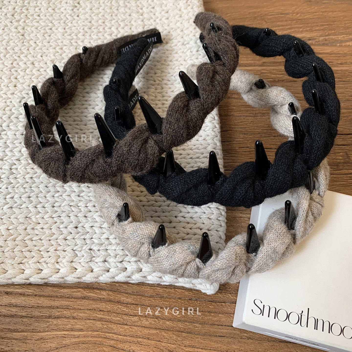 东大门新款 女秋冬带齿高颅顶头箍新 韩系麻花针织发箍ins博主同款