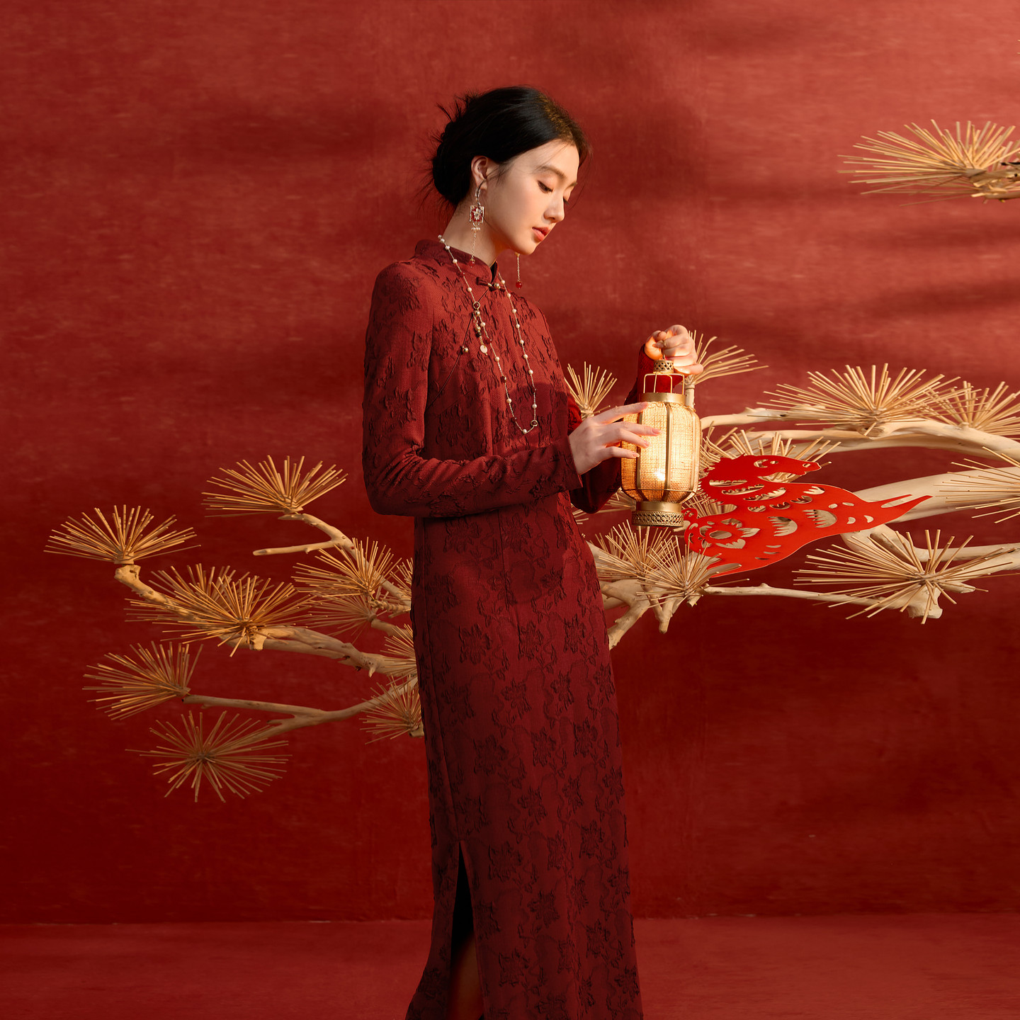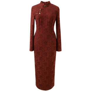 众里嫣然 连衣裙提花修身 2025冬季 新中式 旗袍裙C 新款 三彩