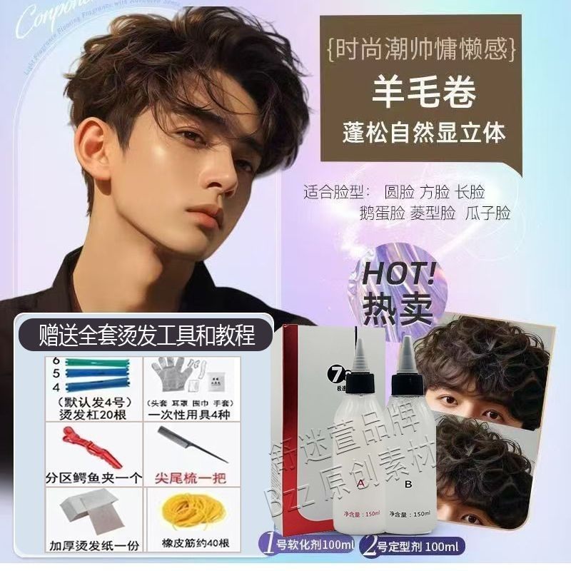 男士 烫发药水锡纸烫冷烫自己在家烫头发全套工具家用不伤发烫发剂