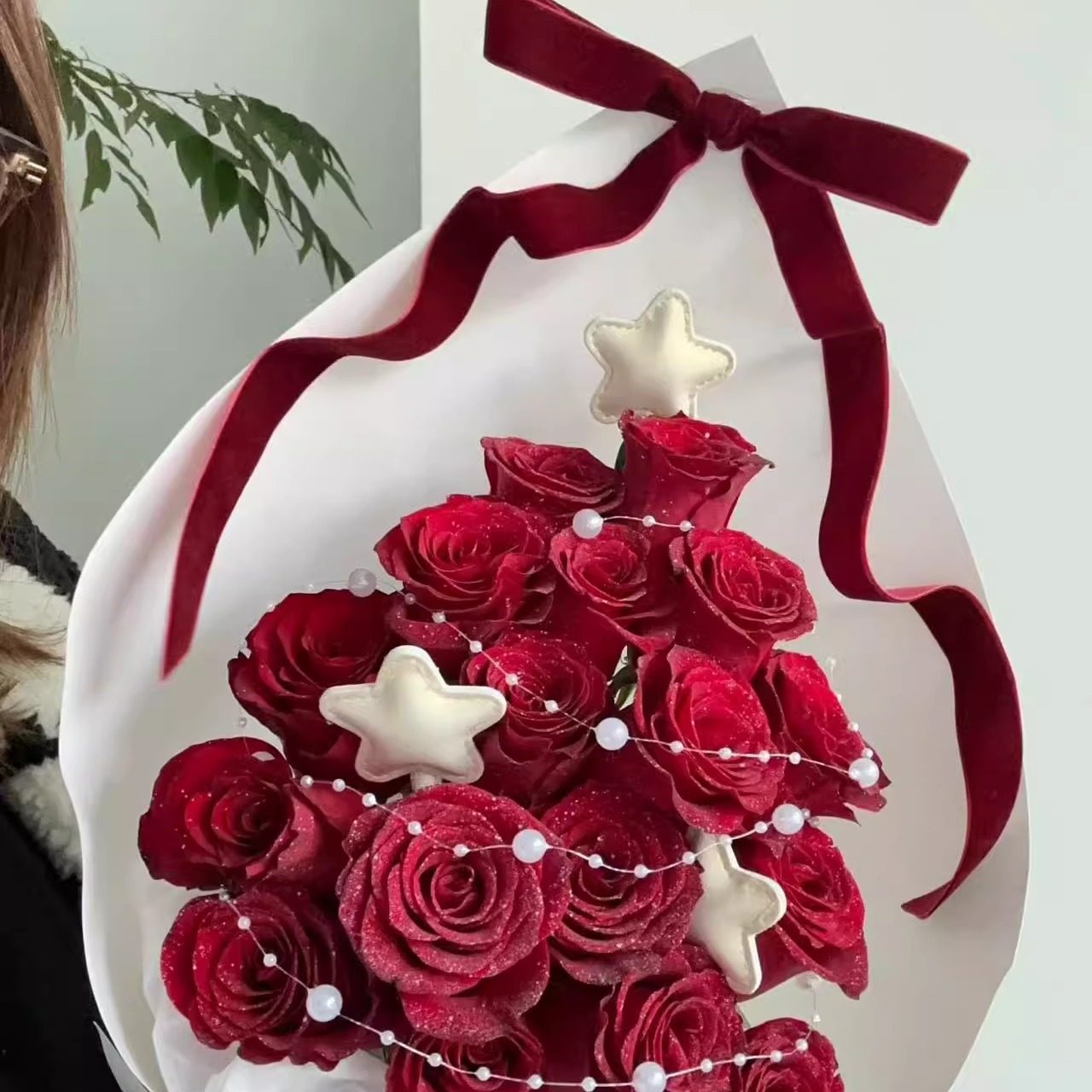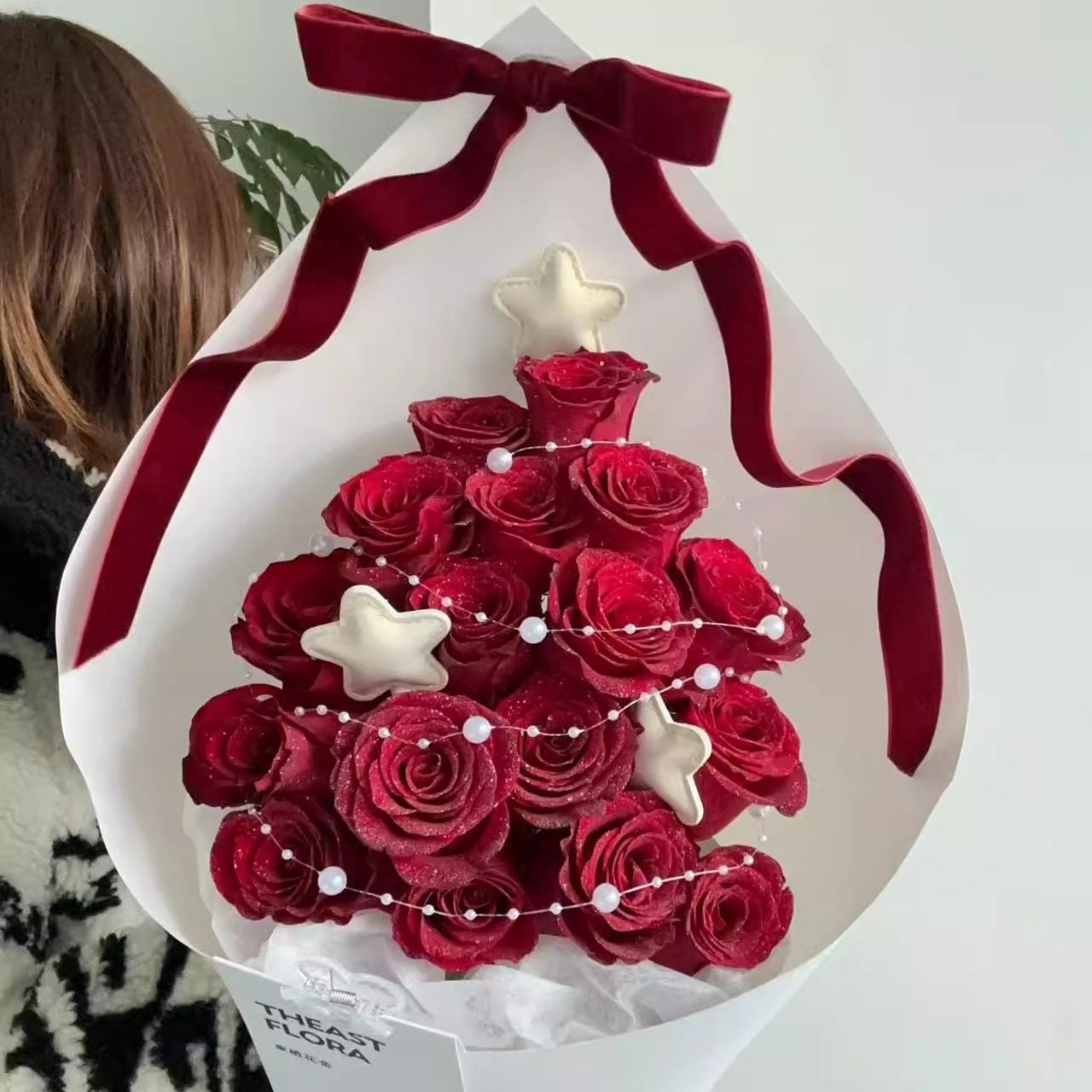 花喜爱 diy精致配件花艺资材 圣诞树玫瑰花花店鲜花束礼物包装