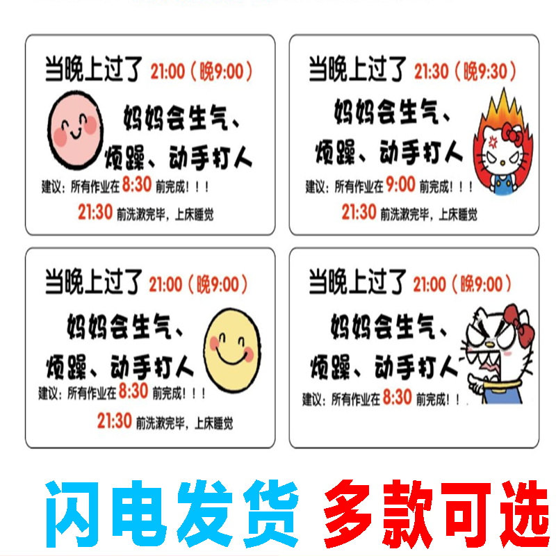 小学生习惯养成卡片9点之前请上床9点之前完成作业妈妈会生气标牌