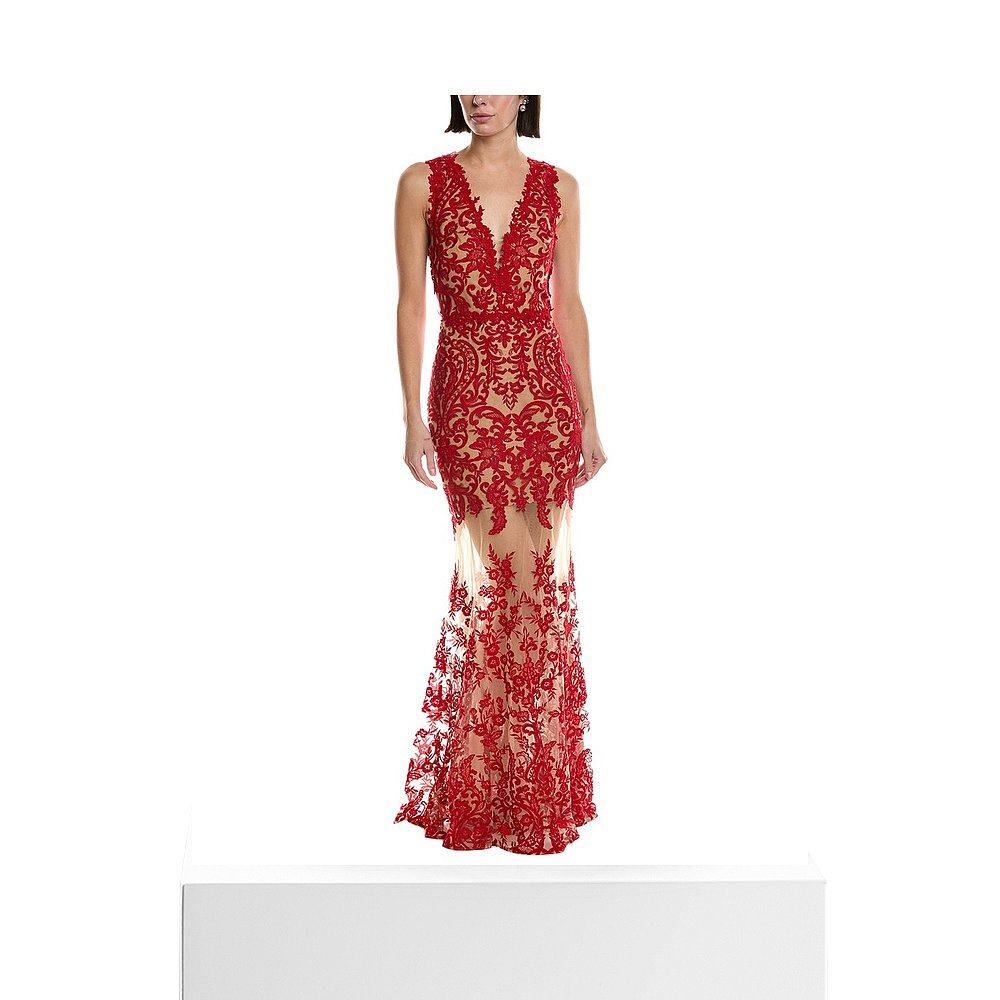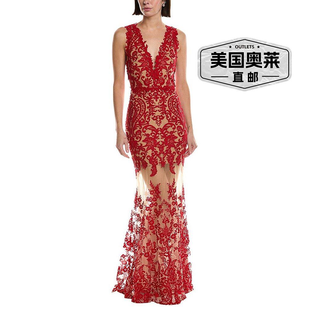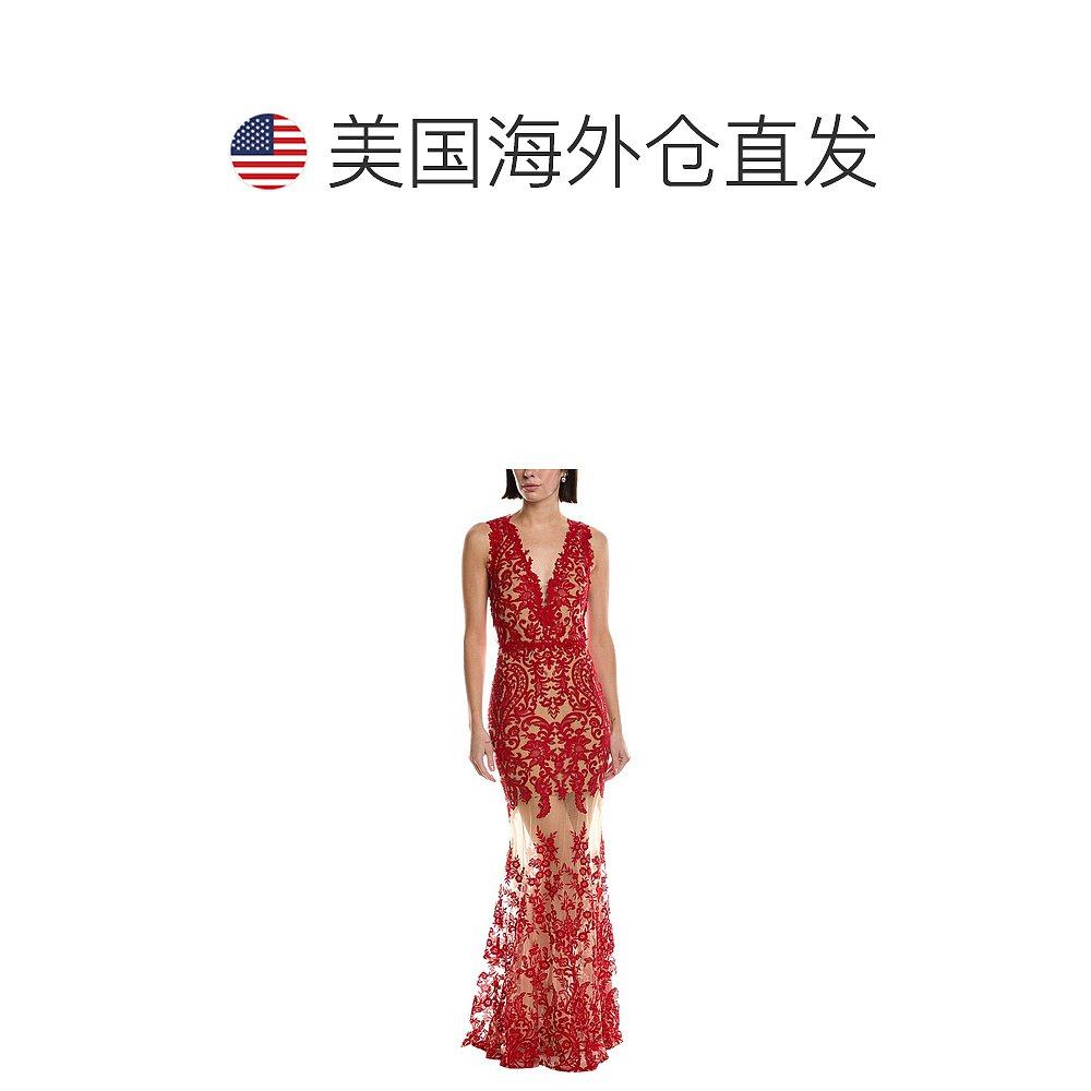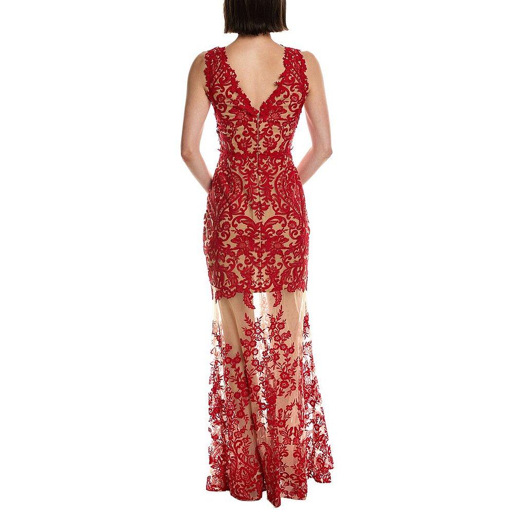 Deep Neck 自营Marchesa Gown Sleeveless Embroidered Notte