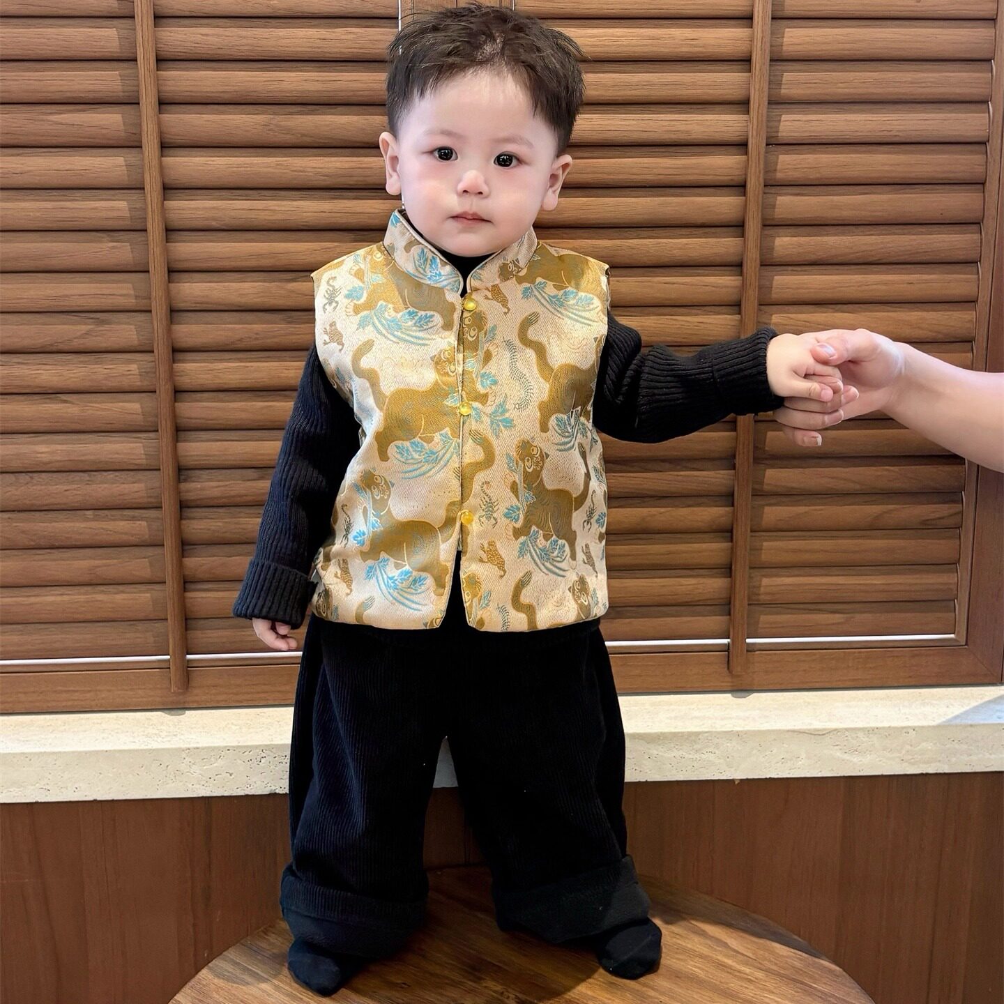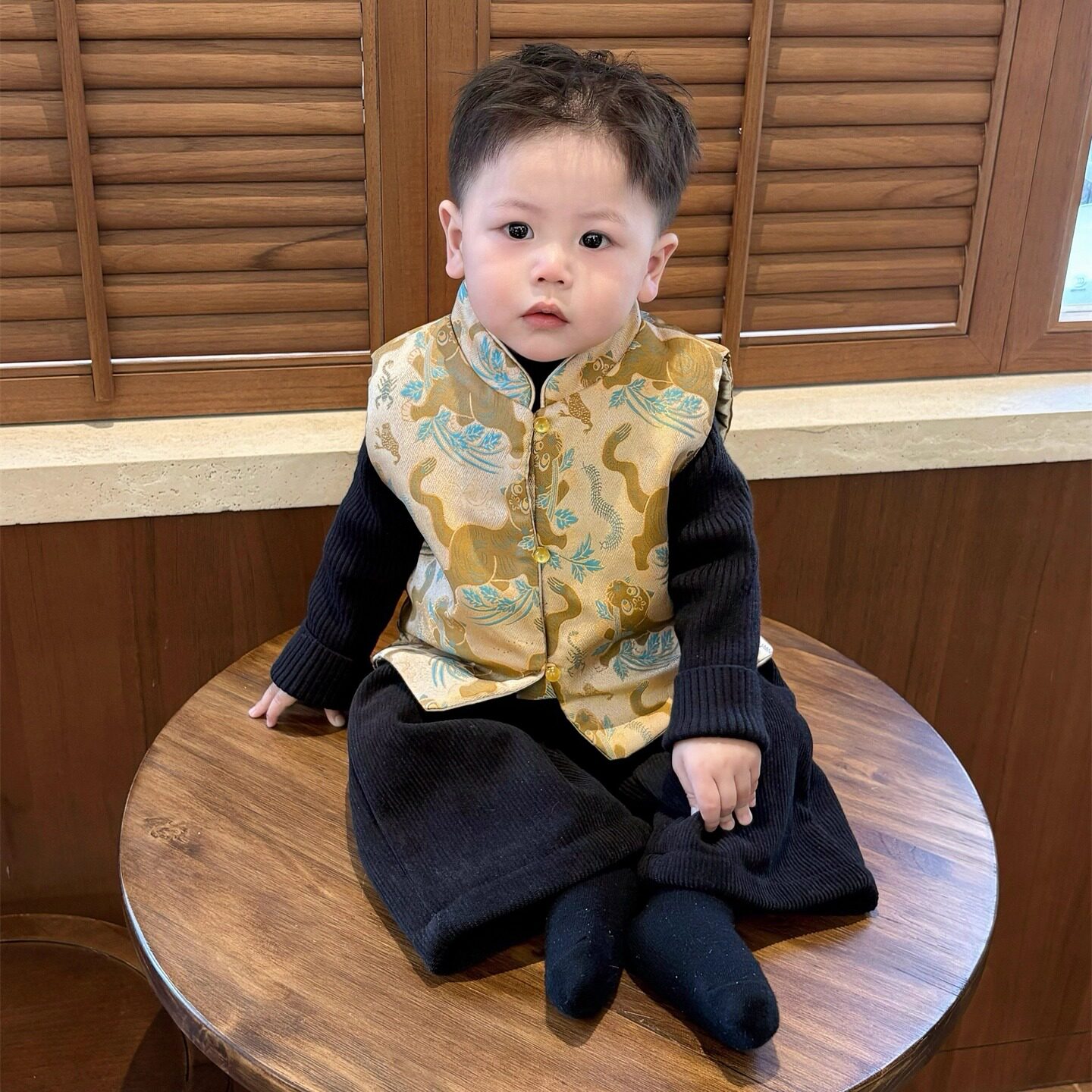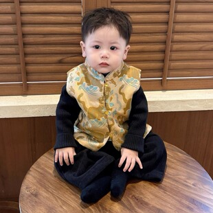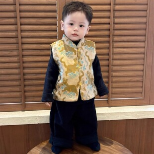 过年男宝衣服冬复古中式 婴儿马甲周岁宴生日礼服 国风汉服唐装
