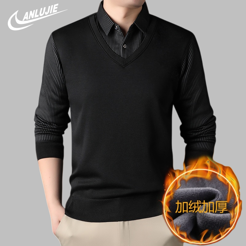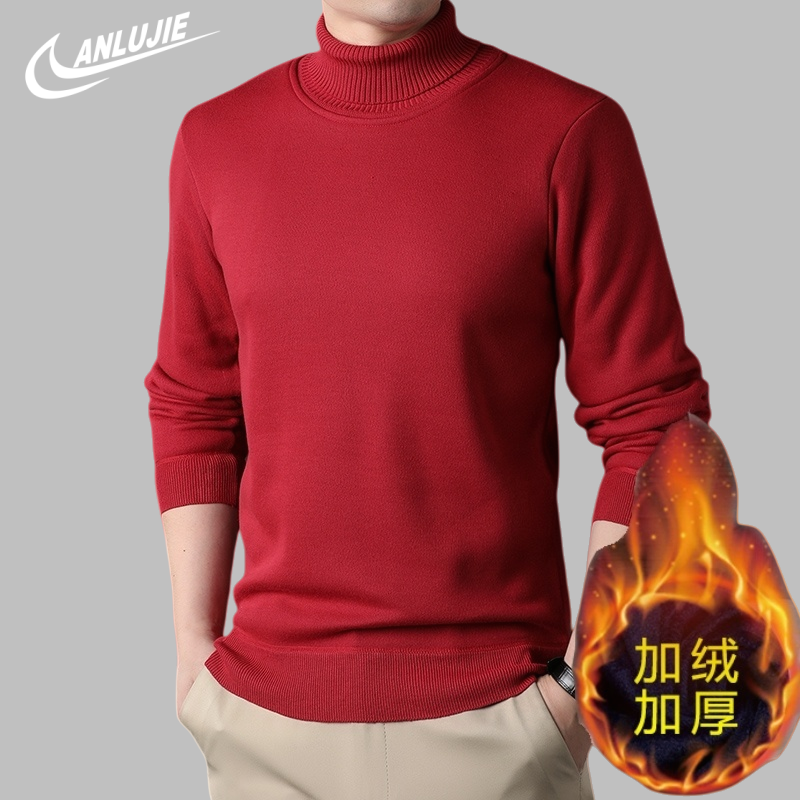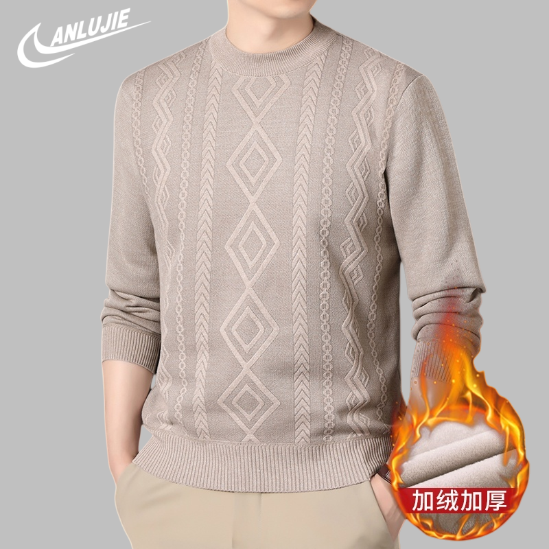 打底衫 ANLUJIE 中青年秋冬款 加绒加厚圆领针织衫 毛衣男秋冬季