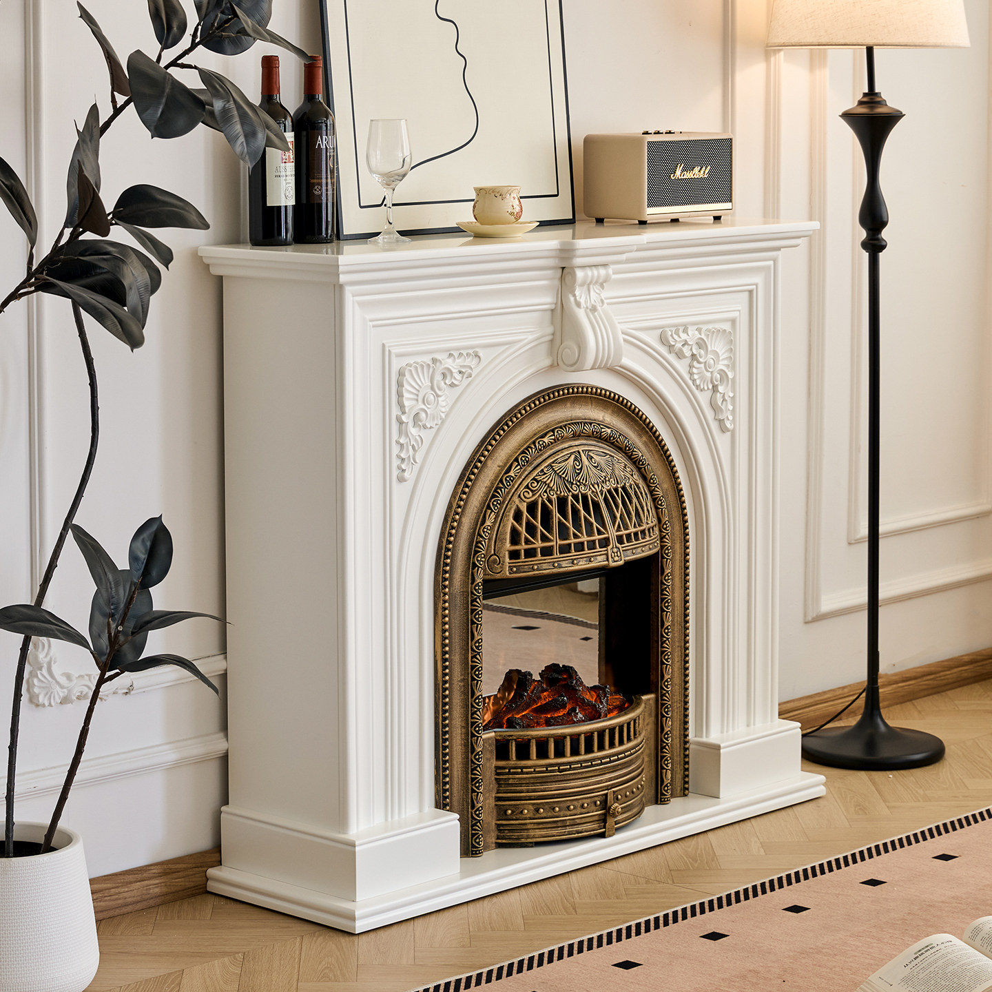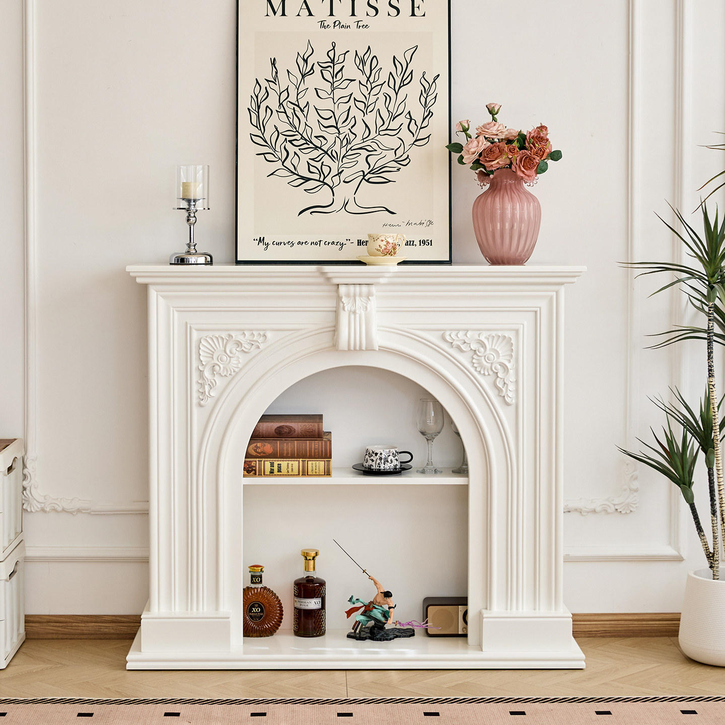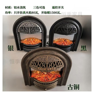 饰柜壁柜一体实木玄关柜鸟笼壁炉 壁炉装 法式 复古壁炉柜仿真火法式