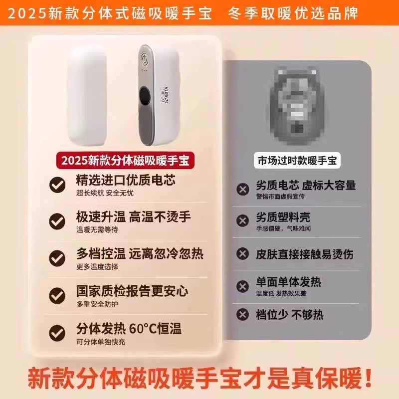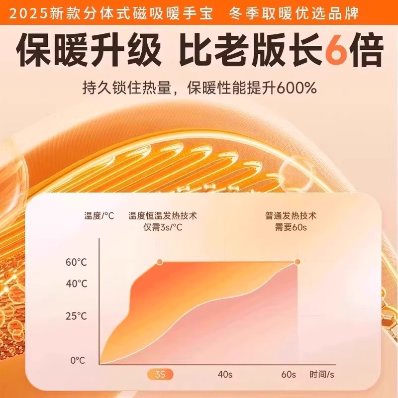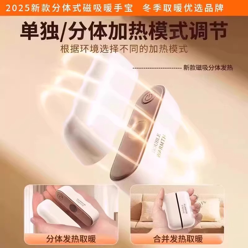 二合一暖宝宝自发热女生礼物学生儿童迷你随身手握式 磁吸分体式 暖手蛋防爆长续航取暖 2025新款 暖手宝充电款