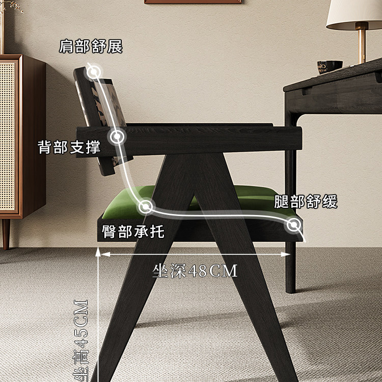 昌迪加尔椅实木中古侘寂风餐桌椅家用藤编复古白蜡木餐厅椅子茶椅