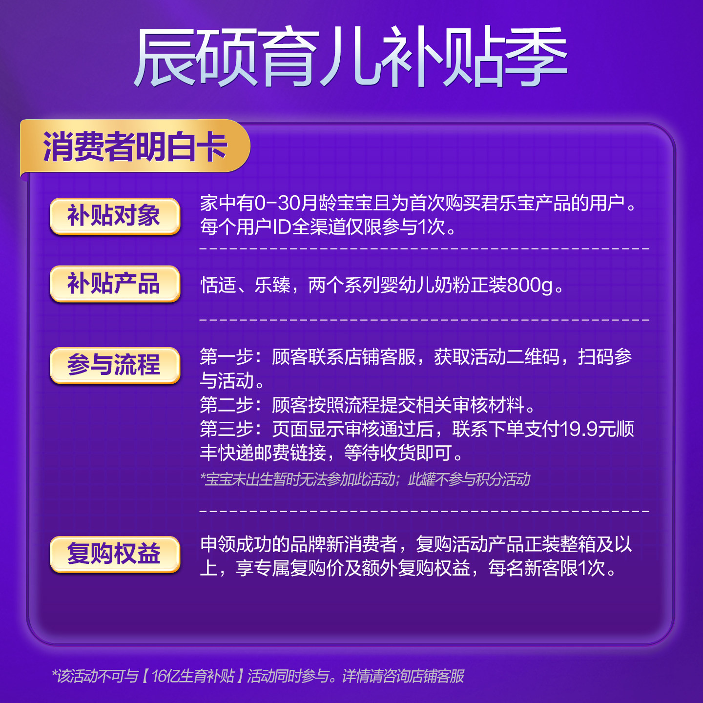 辰硕育儿补贴 注册成功付邮费领君乐宝旗舰店乐臻婴幼儿800g大罐