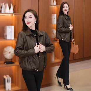 高档皮衣女秋冬加绒加厚2025新款 夹克 软PU皮外套显瘦水洗皮短款