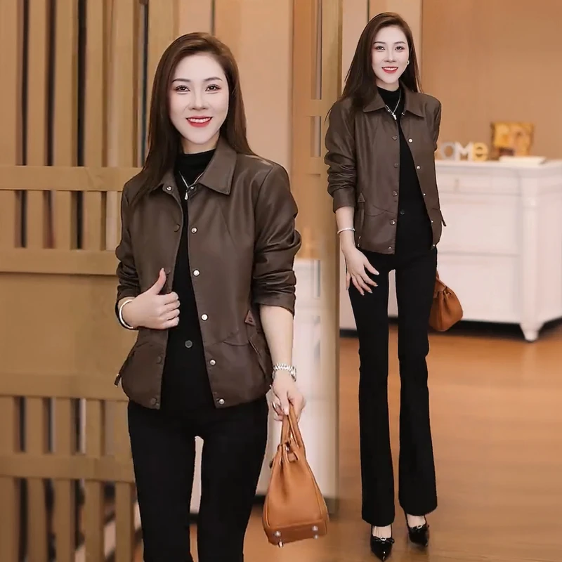 ELI 复古翻领简约设计休闲松弛感通勤男女皮衣夹克外套 可可树