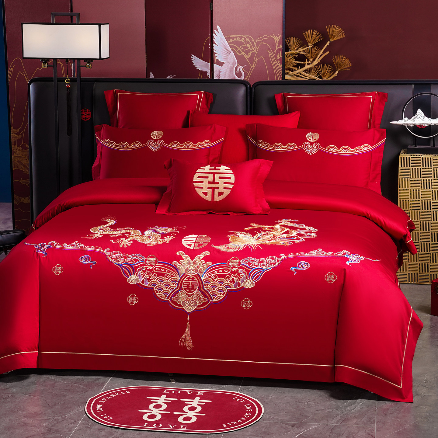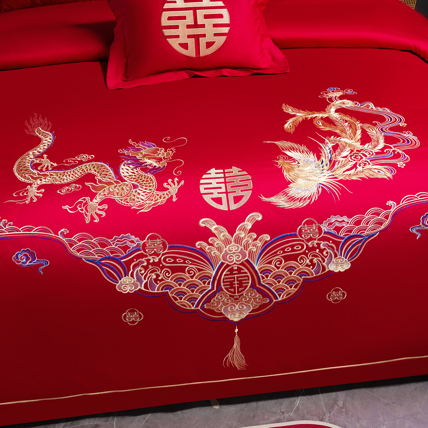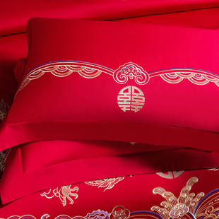 中式 被套 红色四件套结婚床上用品龙凤喜被罩婚庆床单高档2025新款