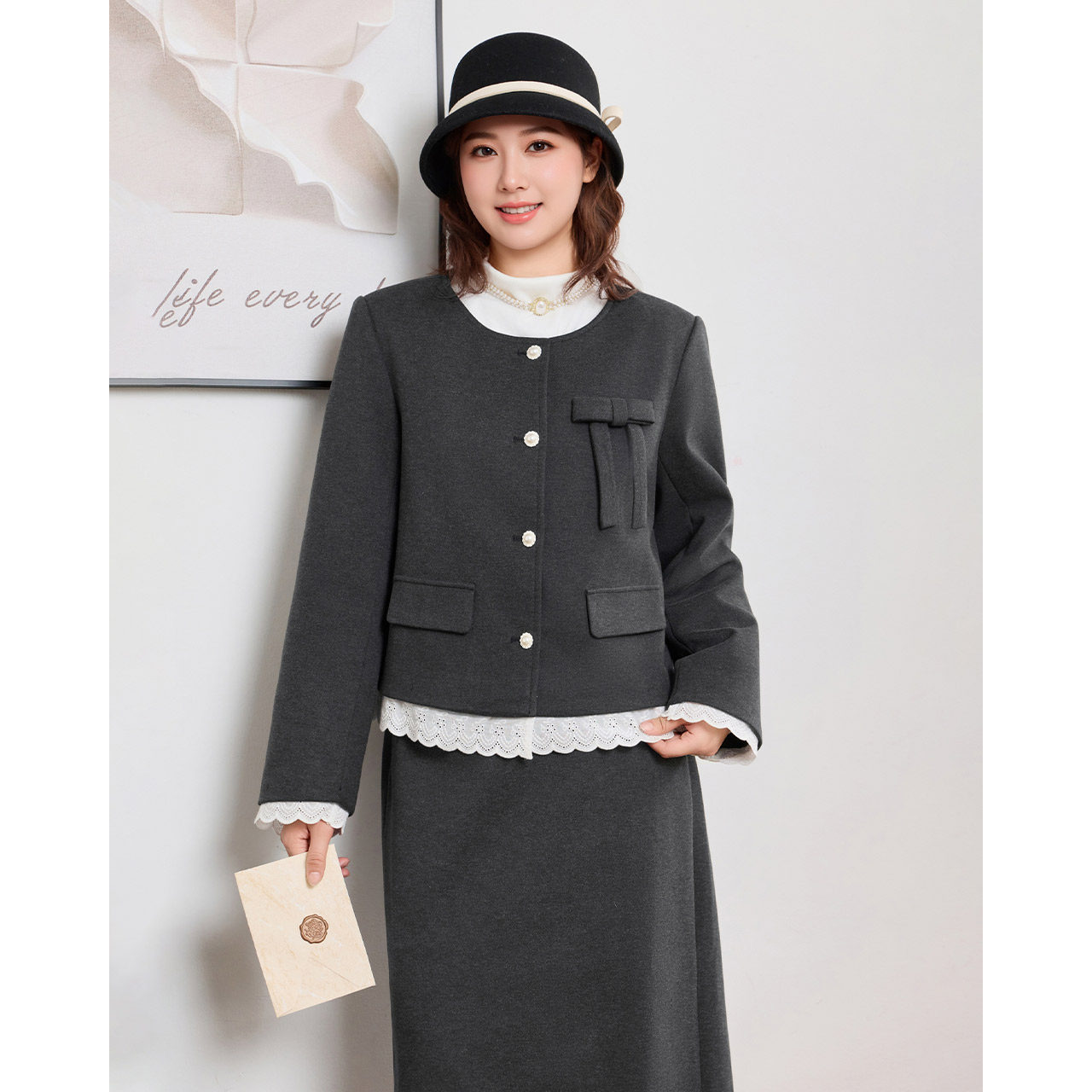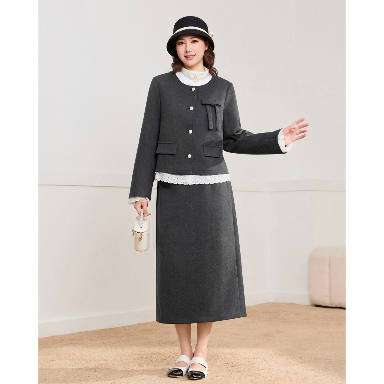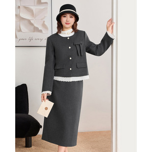 女装 大码 2025冬季 新款 气质感夹棉通勤上下套裙 IEF 法式 爱依服