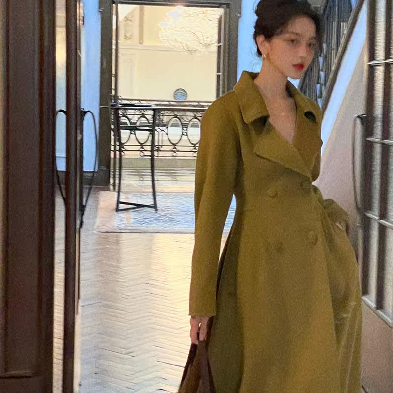 领双排扣呢子风衣外套加厚ins潮流 过膝西装 冬季 毛呢大衣男中长款