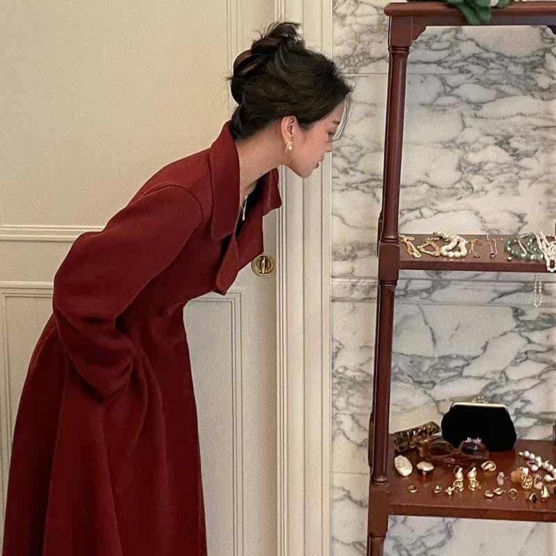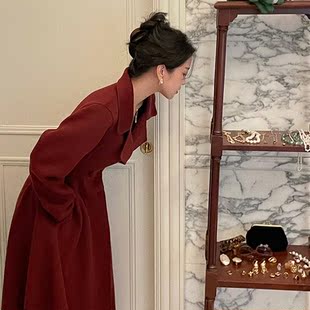 ArguE 高级外套 CulturE贵气红钻设计感廓形垫肩羊毛毛呢大衣长款