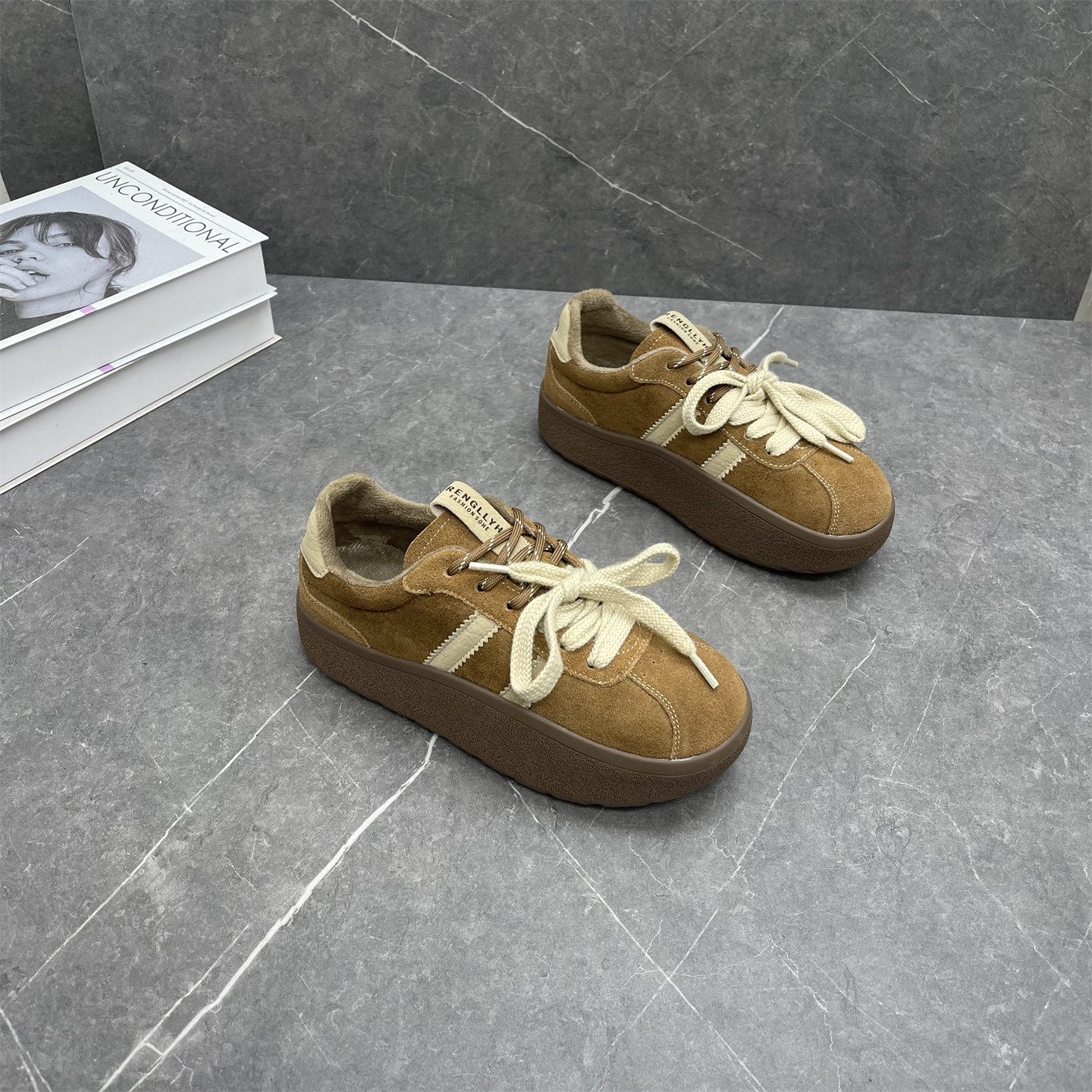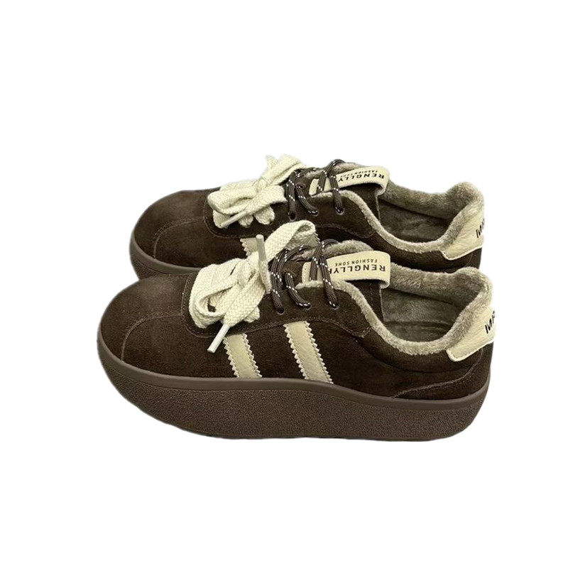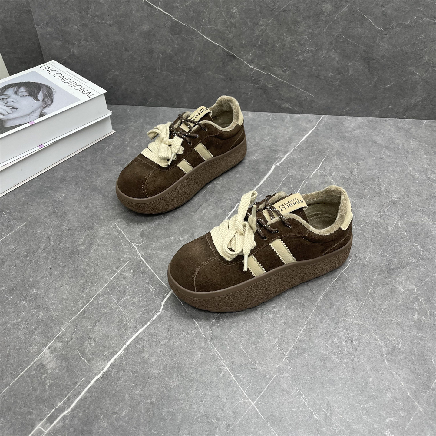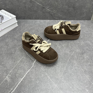 带厚底德训鞋 增高休闲摇摇鞋 女2025冬季 真皮复古加绒时尚 新款 双鞋