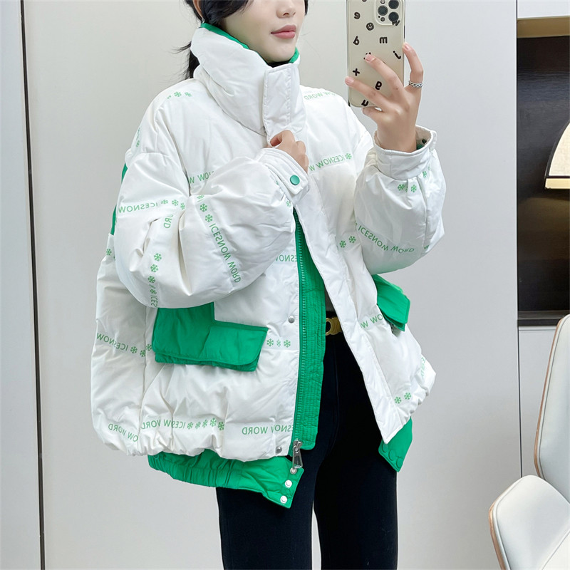 惠衣阁冬女白色羽绒服立领羽绒服韩版 羽绒外套 宽松加厚保暖短款