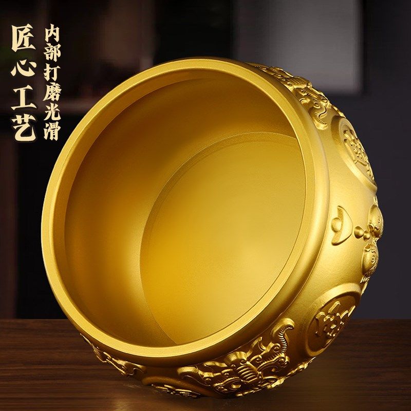 黄铜聚宝盆摆件招财聚财家用存钱罐玄关铜米缸办公室店铺开业礼品