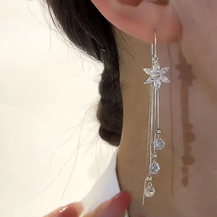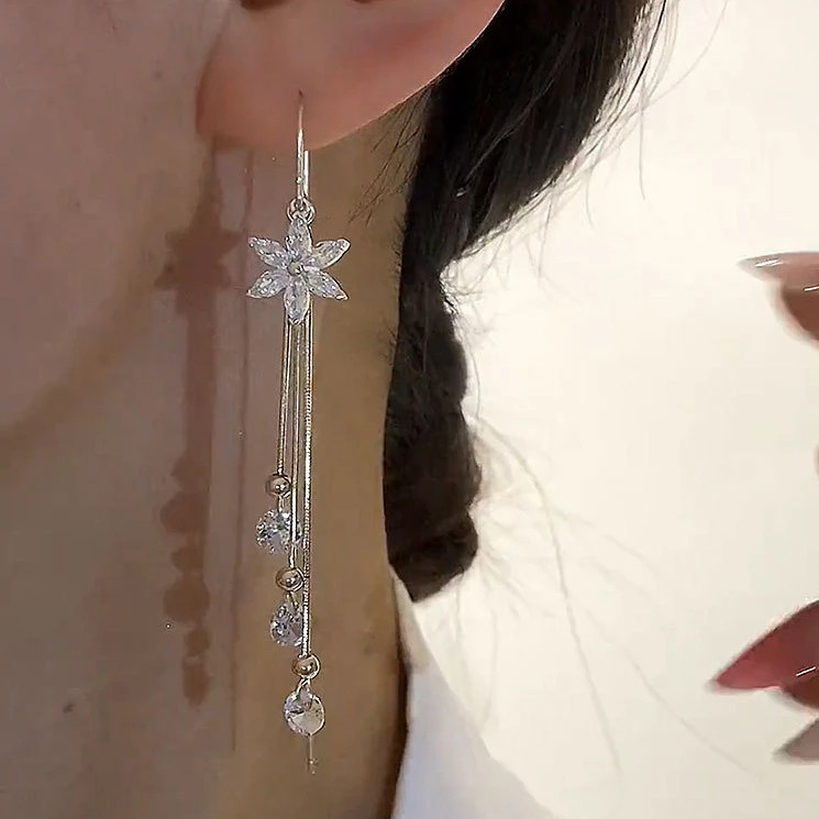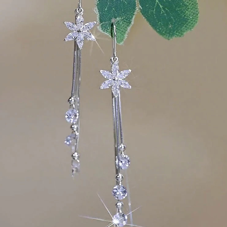 铜合金耳饰2025气质优雅耳环 挚爱礼物 雪花流苏耳线