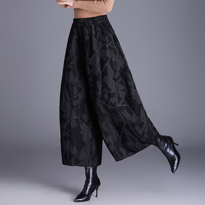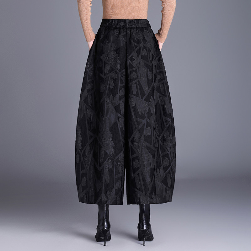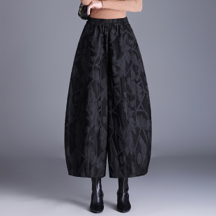 复古宽松阔腿哈伦裤 女高腰九分提花新中式 灯笼秋季 高端国风花苞裤