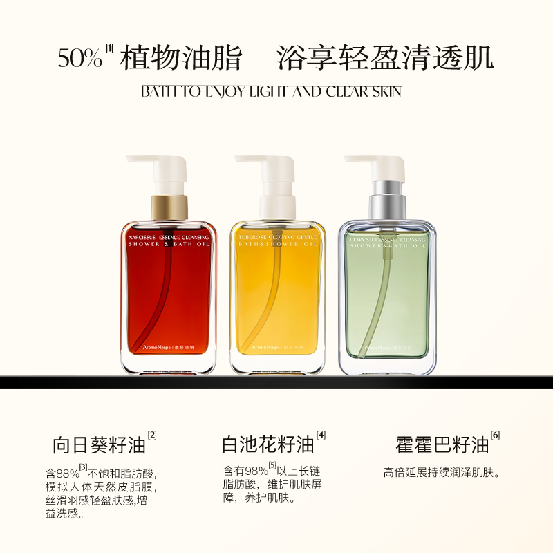 AM馥郁满铺晚香玉光感柔肤沐浴油235ml清洁肌肤官方正品 丝滑洗感