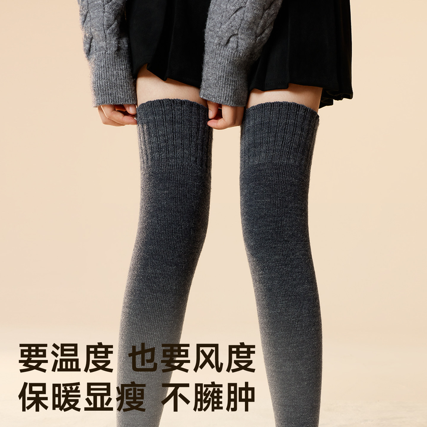 羊毛护膝袜子女款 过膝大腿袜 老寒腿腿套防寒袜套保暖美利奴秋冬季