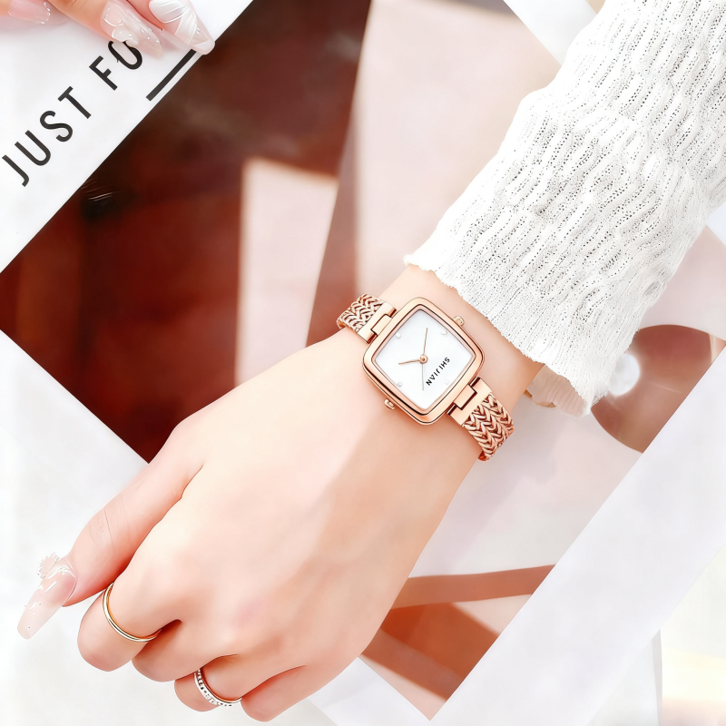 新款 轻奢小众高级感方形腕表超薄防水石英表 女手表复古小金表女款