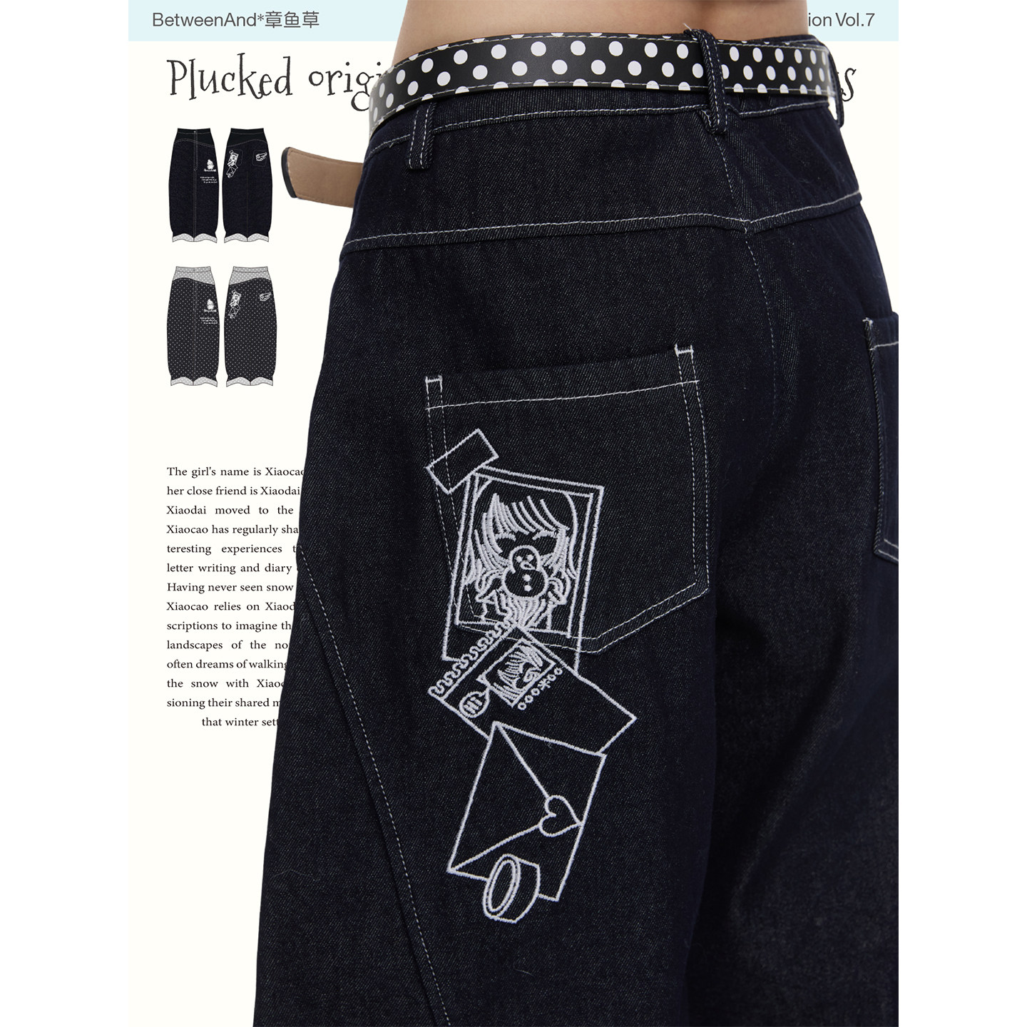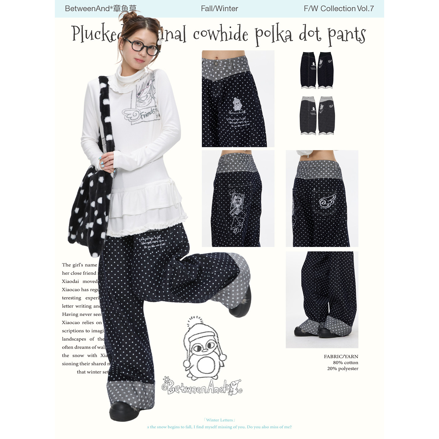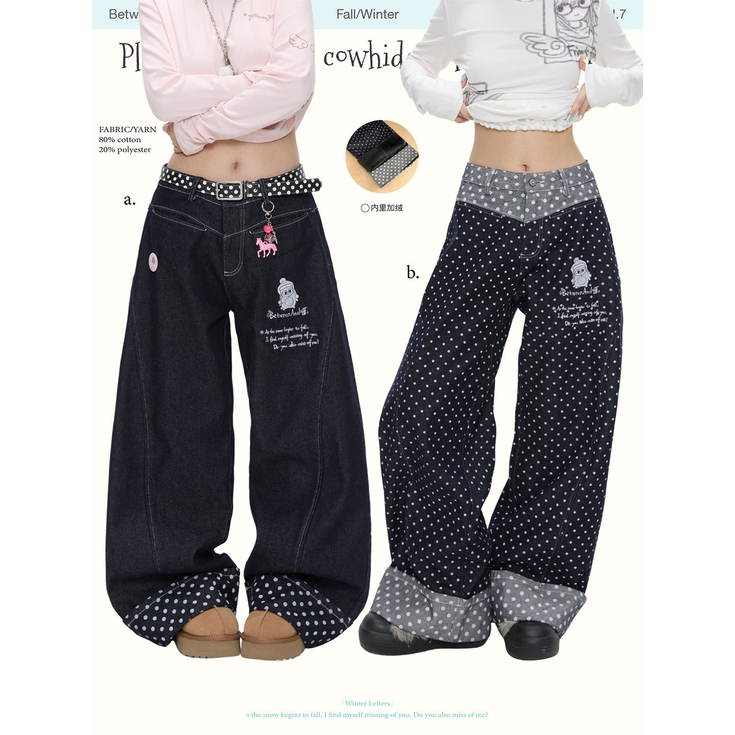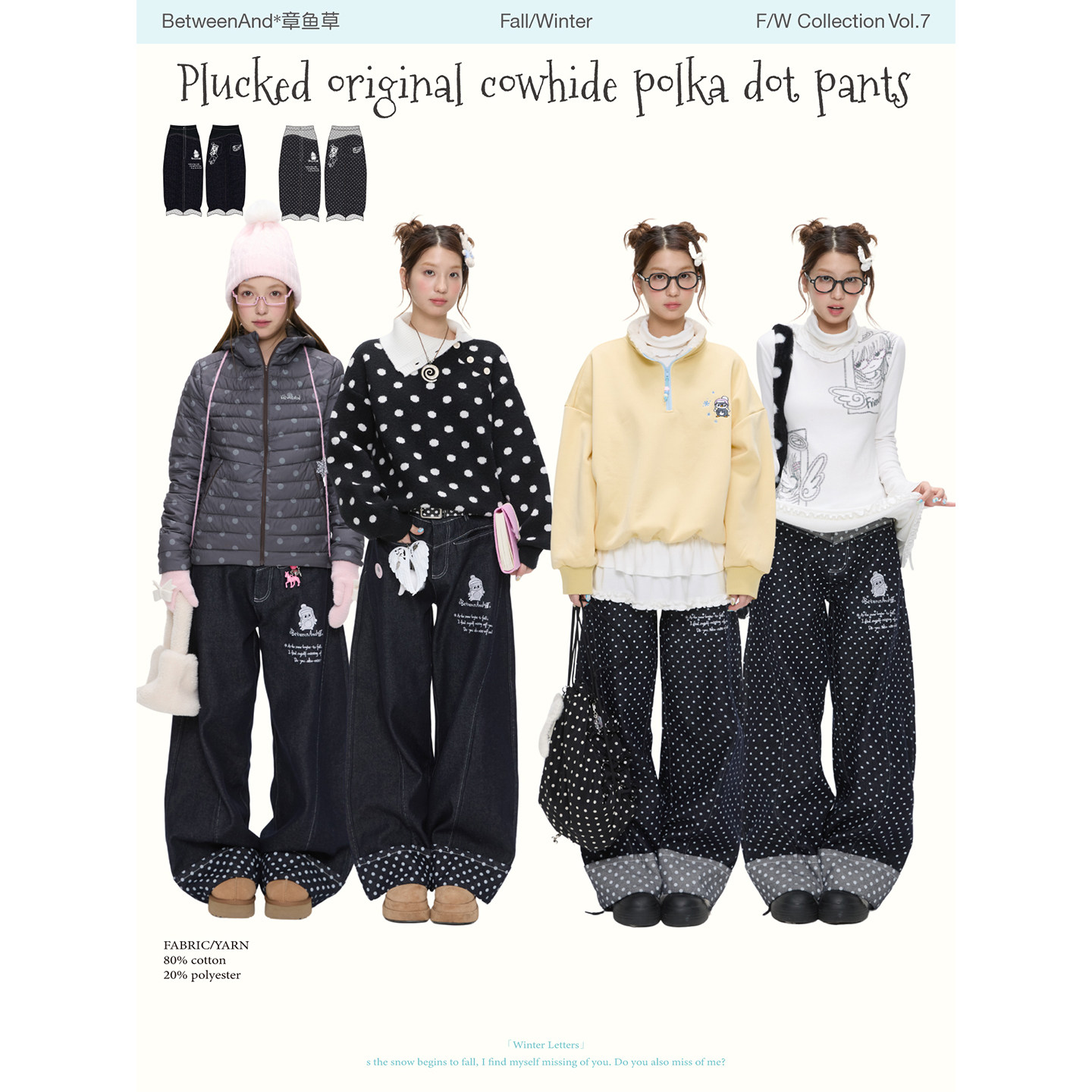 原创加绒原牛波点牛仔裤 BETWEENAND「北海道雪」冬季 企鹅刺绣冬季