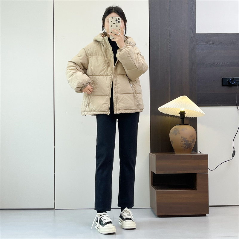 惠衣阁秋冬女连帽羽绒服短款 宽松休闲保暖羽绒外套 羽绒服韩版