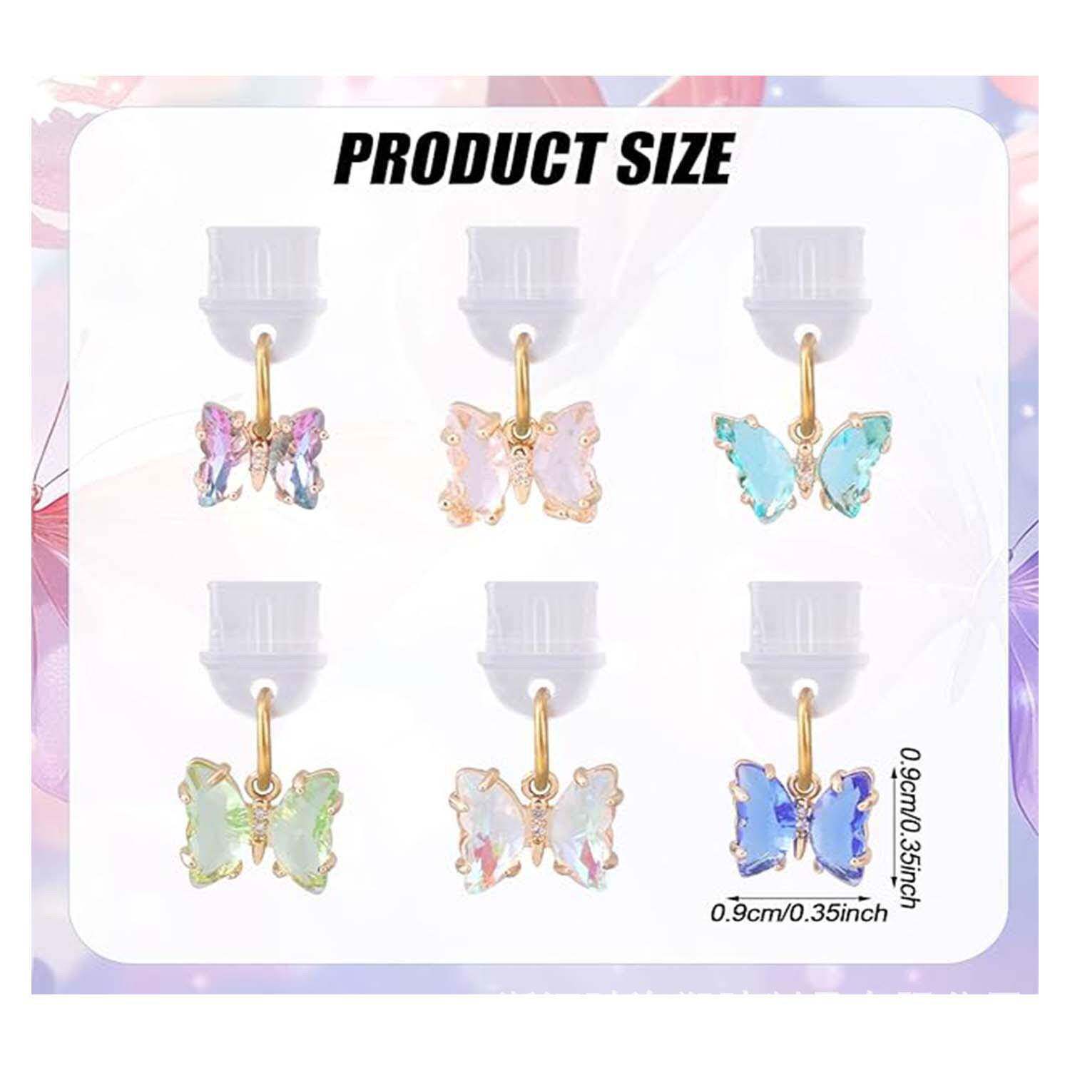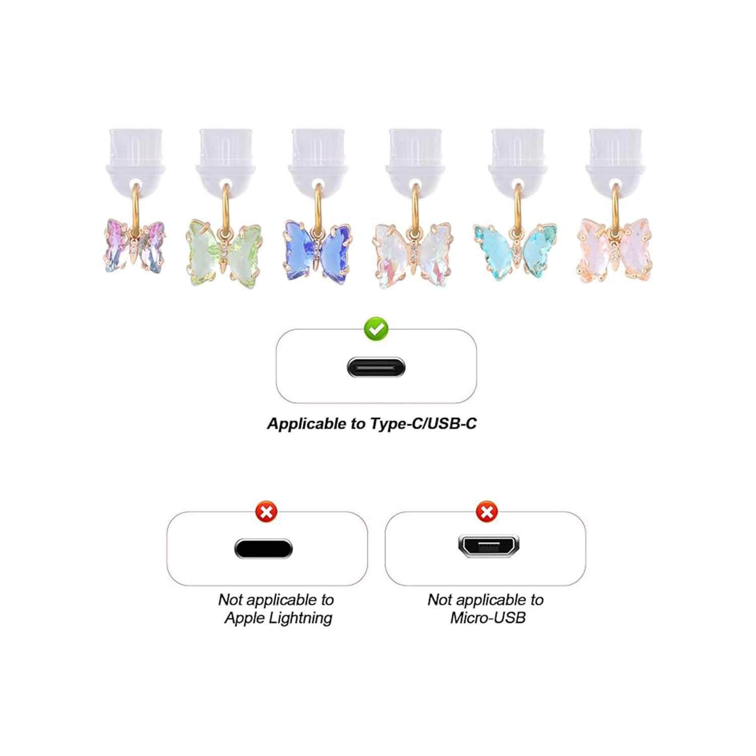 6件蝴蝶防尘塞坠饰移动防尘塞手机挂坠适用于Type CUSB手机
