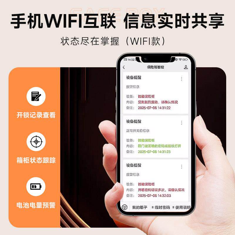 迷你报警保管箱2026新款 虎霸保险柜家用小型20 保险箱办公WIFI防盗儿童存钱罐男孩款 45cm指纹密码 搬不走