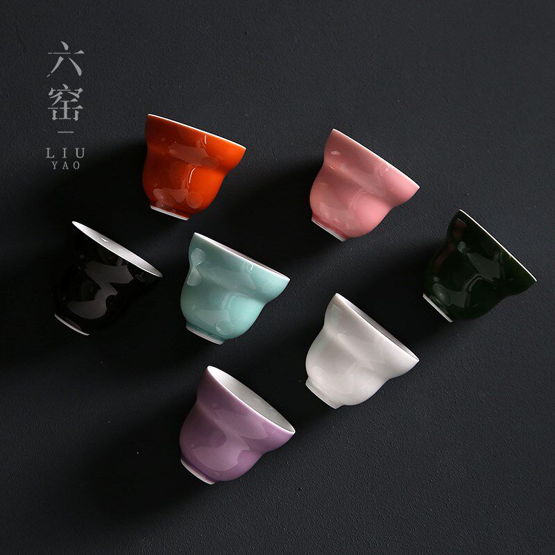 白瓷色釉功夫茶杯品茗杯创意葫芦福禄杯家用陶瓷单杯粉蓝紫个人杯