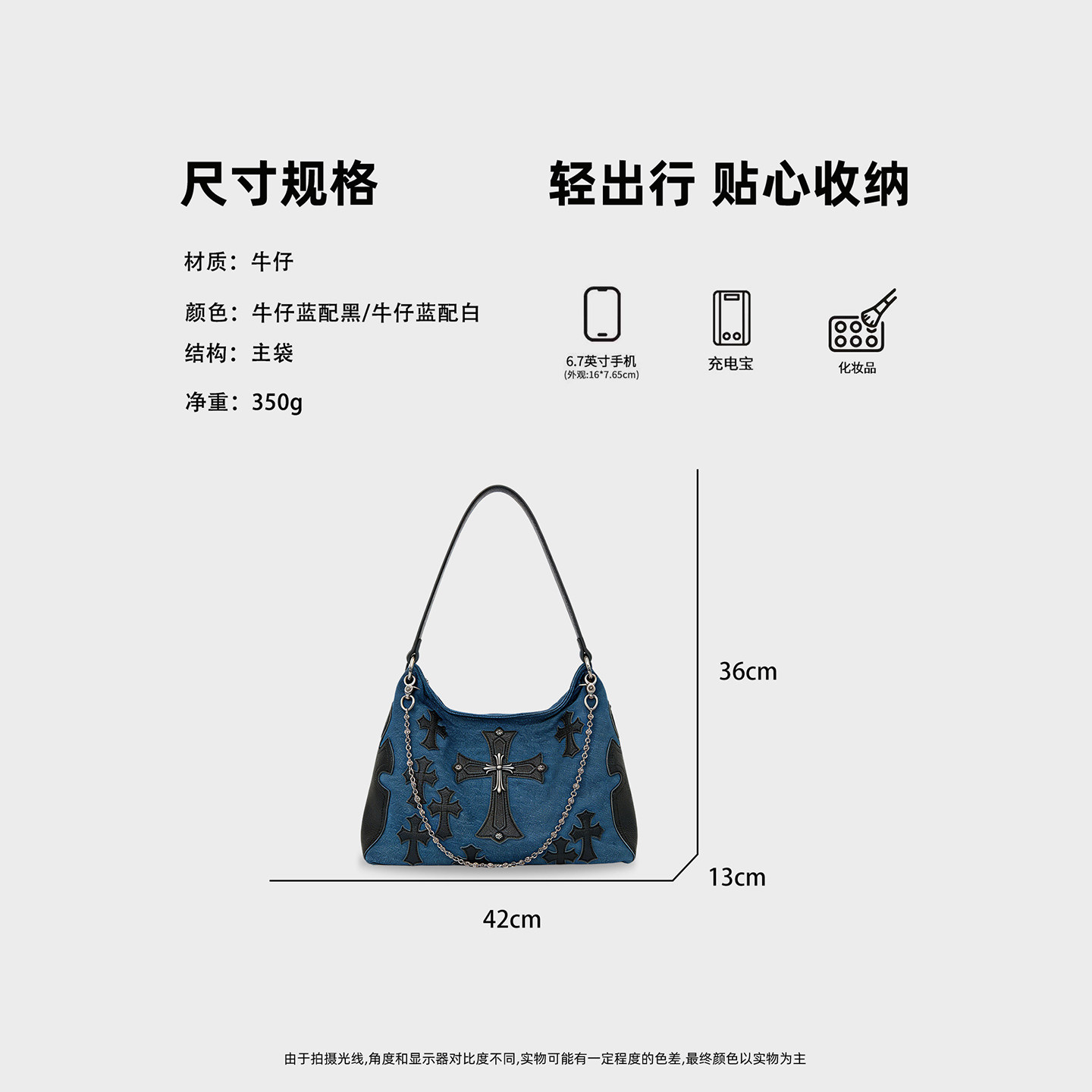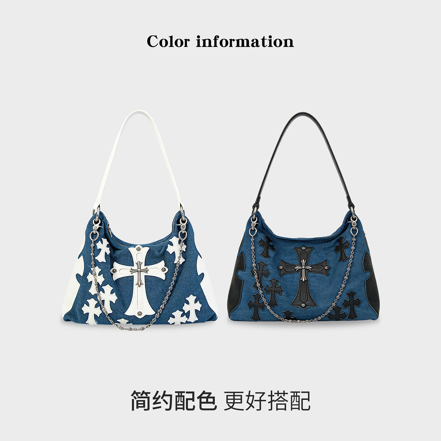 CKKUI 腋下链条包高级感手提包单肩包 韩系十字架牛仔包包2026新款