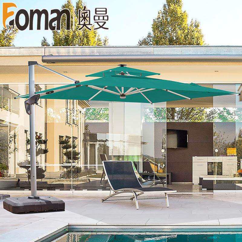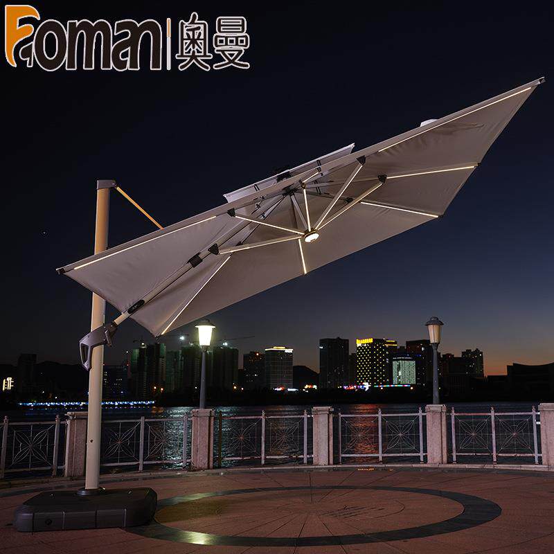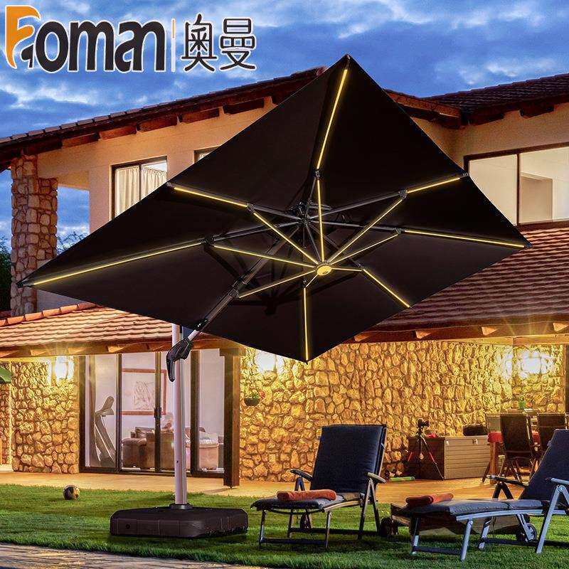 户外遮阳伞庭院伞太阳伞太阳能带LED灯带发光室外露天大型伞