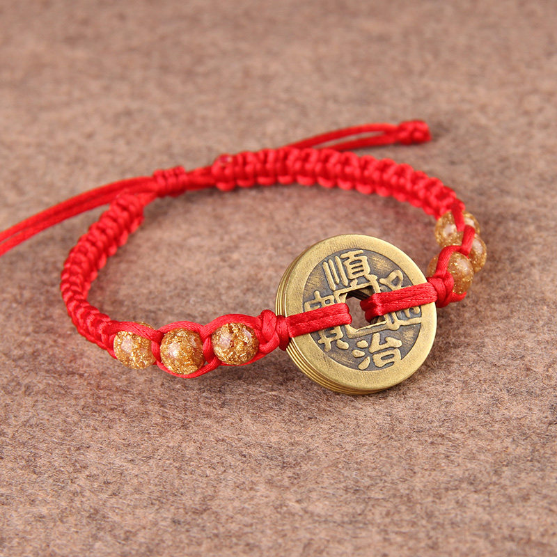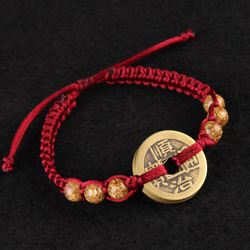 铜五帝钱手链招财转运开运护身红绳编织男女脚链精美手链脚链