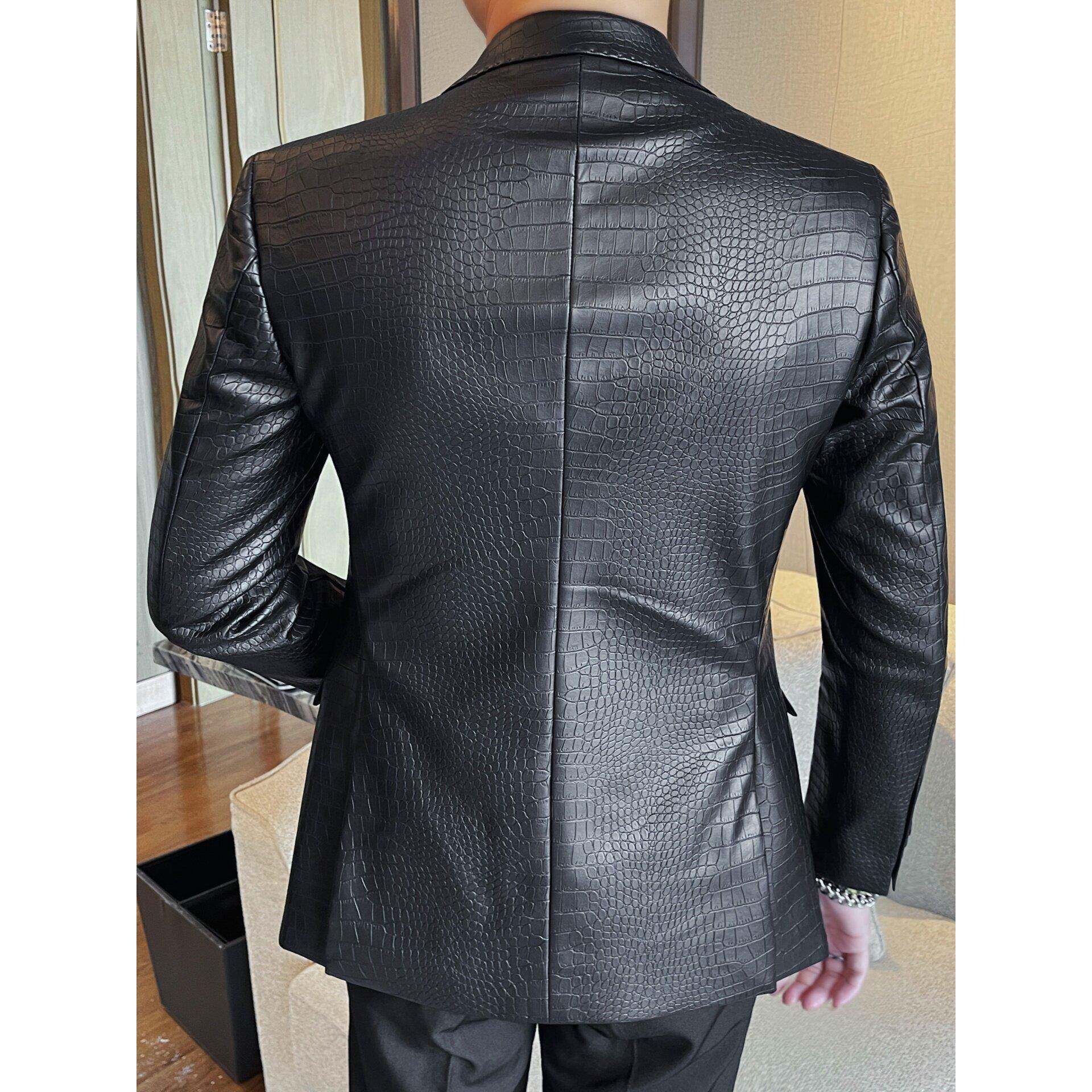 西服上衣 感英伦休闲痞帅修身 香港鳄鱼纹皮西装 外套男秋冬2025新款