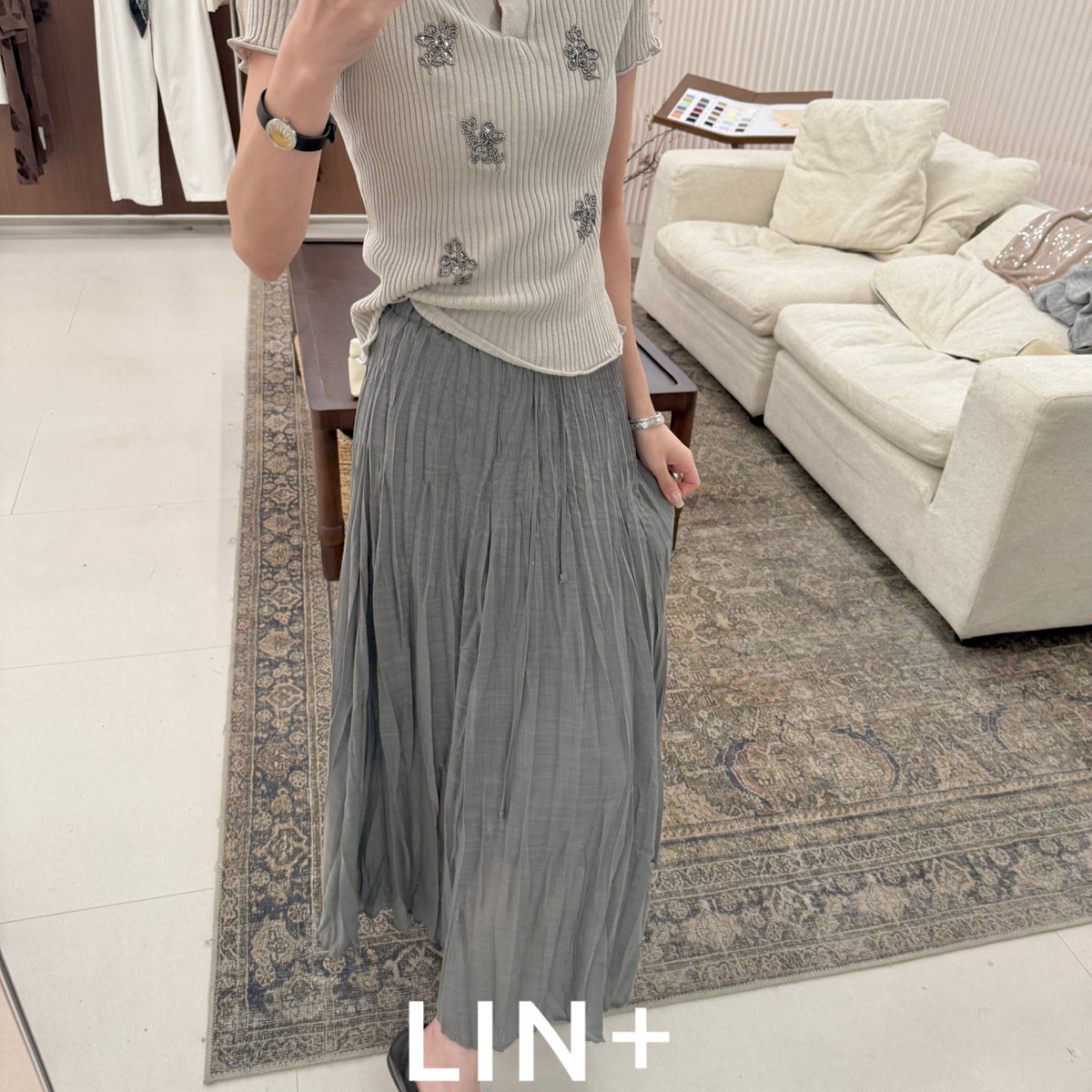 LIN CY722 夏上新~轻奢重工手工钉珠坑条弹力气质优雅小衫