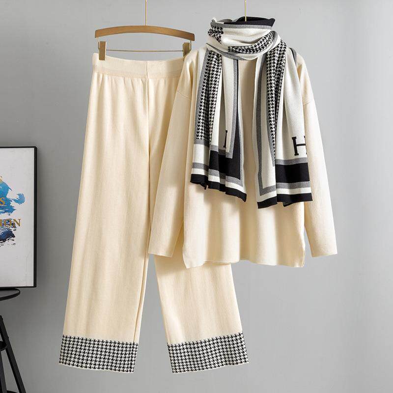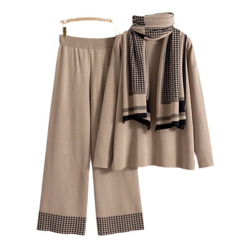 sweater shawl pants leg wide neck high set Women